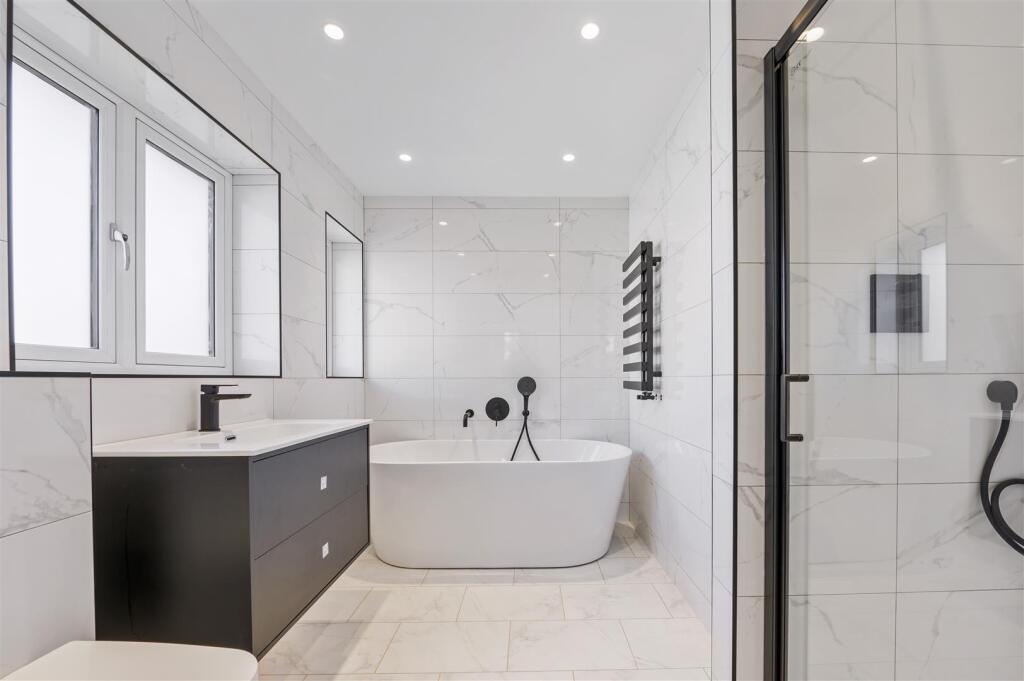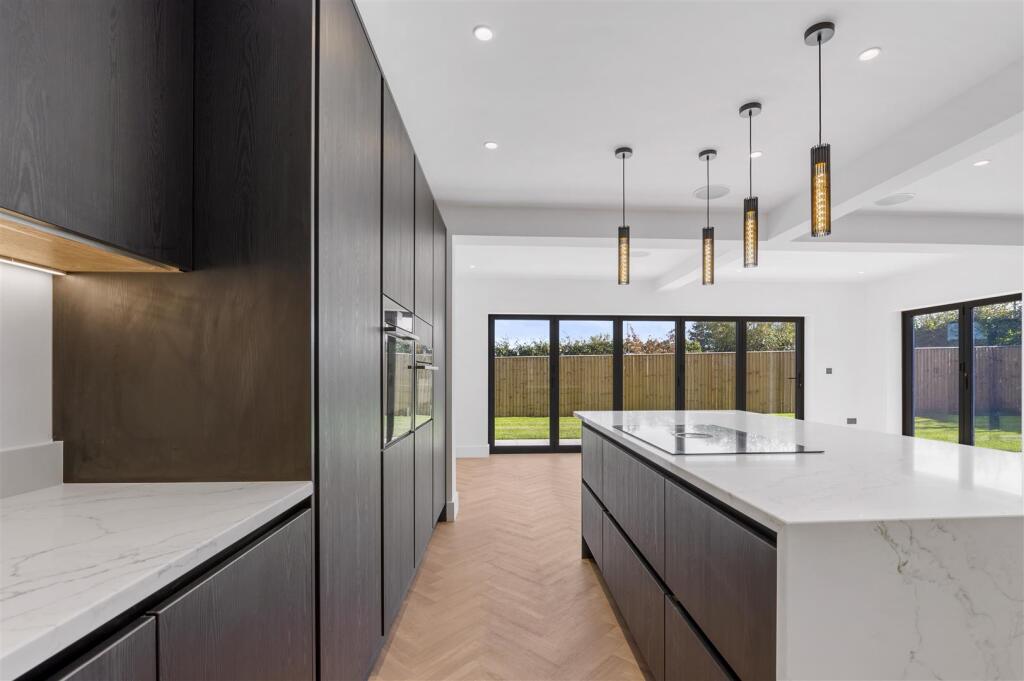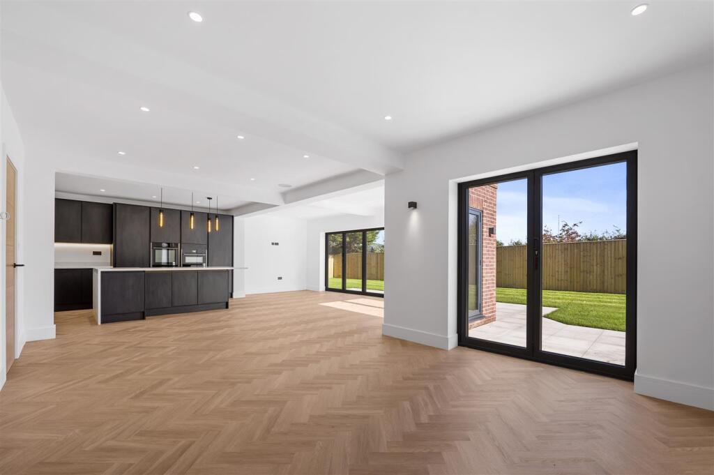 The property itself appears to be newly built or recently renovated to a very high standard. The images show modern fixtures and fittings, a contemporary design, and high-quality finishes throughout. There is no visible evidence of wear and tear or the need for repairs. The spacious layout and well-maintained garden further enhance the property’s appeal.