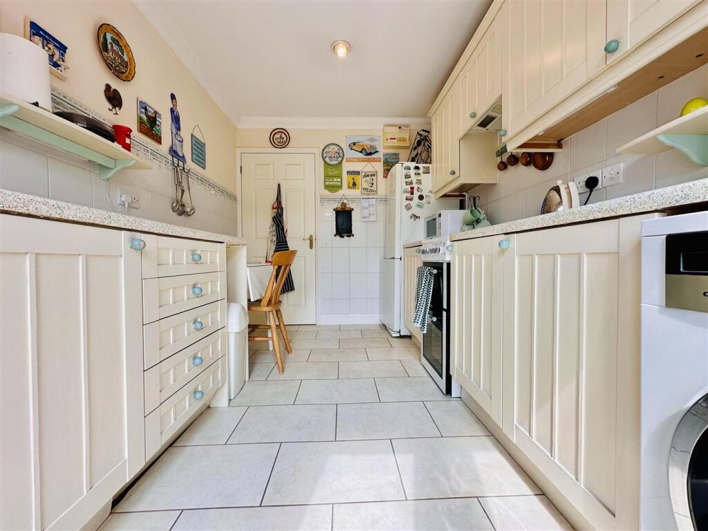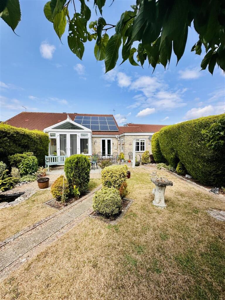 This is a two-bedroom bungalow in Cheddar, Somerset. The property is listed with Olive Estate Agents. It features a well-maintained garden, a conservatory, and off-street parking. While the property is generally in good condition, some areas could benefit from updating. The location is desirable, with proximity to schools and local amenities. The price appears reasonable for the area, but the lack of square footage information makes a precise valuation challenging.