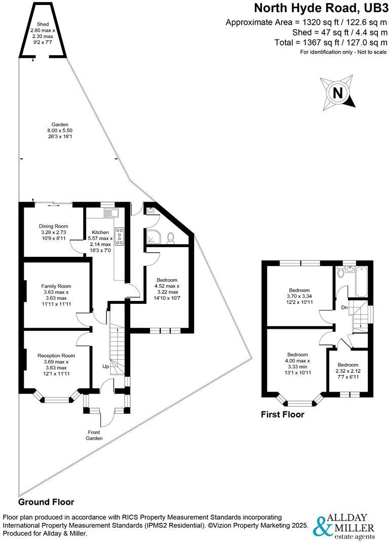 This is a semi-detached property located on North Hyde Road, Hayes. It features four bedrooms and two bathrooms, with a total area of 1,367 sqft. The property is situated in a location that offers convenient access to nearby schools and transportation, including Hayes And Harlington station. While the kitchen has been modernized, some rooms show signs of wear, and the garden needs some maintenance. The property is listed at £615,000, which appears reasonable given its size, location, and condition.