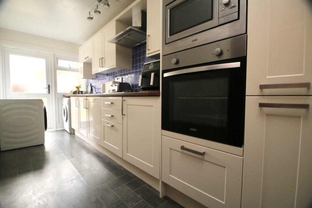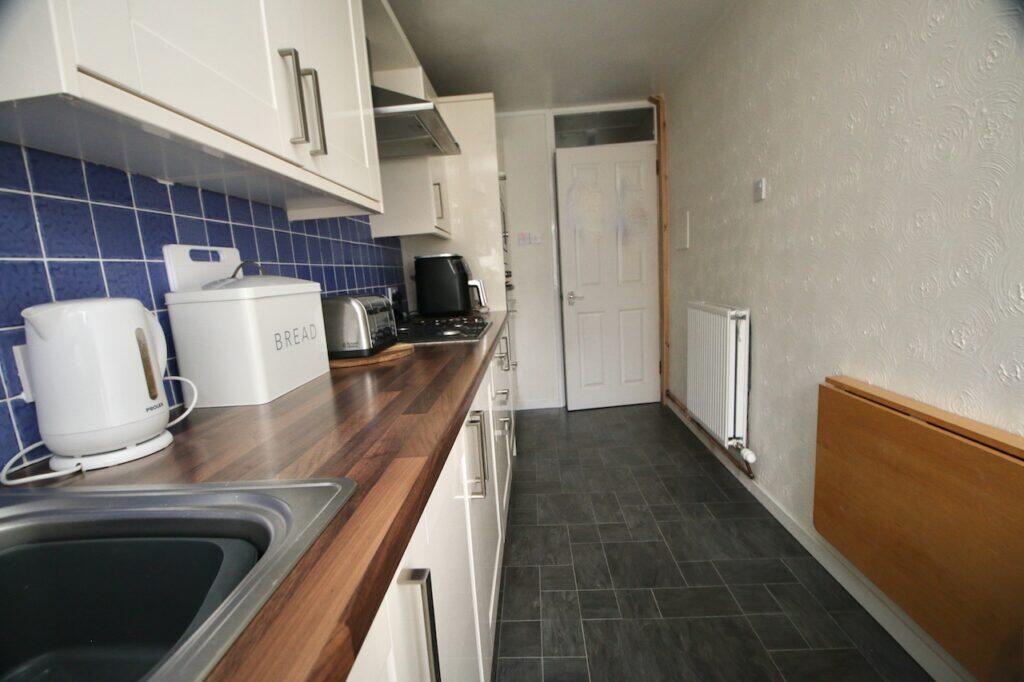 The property is a 3 bedroom end of terrace house located in Seafar, Cumbernauld. The asking price is £125,000. The property benefits from a rear garden, as shown in the provided images. The garden appears to be of a reasonable size for an end of terrace property. Based on the images, the property appears to be in good condition. The interior is presented well, with modern flooring and updated kitchen and bathrooms. There is no obvious evidence of significant repair or renovation needs. The average house price in the area is £95,532, with an average price per square foot of £53. This property is listed at £125,000 and has 1026 sqft. Considering the condition and the inclusion of a garden, the asking price appears slightly higher than the average for the area, but still within a reasonable range. Further analysis of comparable properties would be needed to confirm this. The proximity to several train stations (Greenfaulds, Cumbernauld, Croy, Coatdyke and Airdrie) is a positive aspect of the location, offering convenient access to public transportation. However, information on nearby schools is missing, which would be a key factor for many buyers.