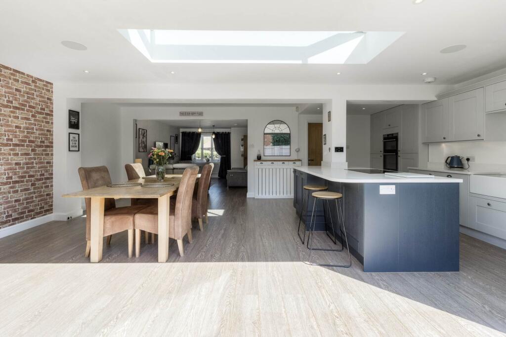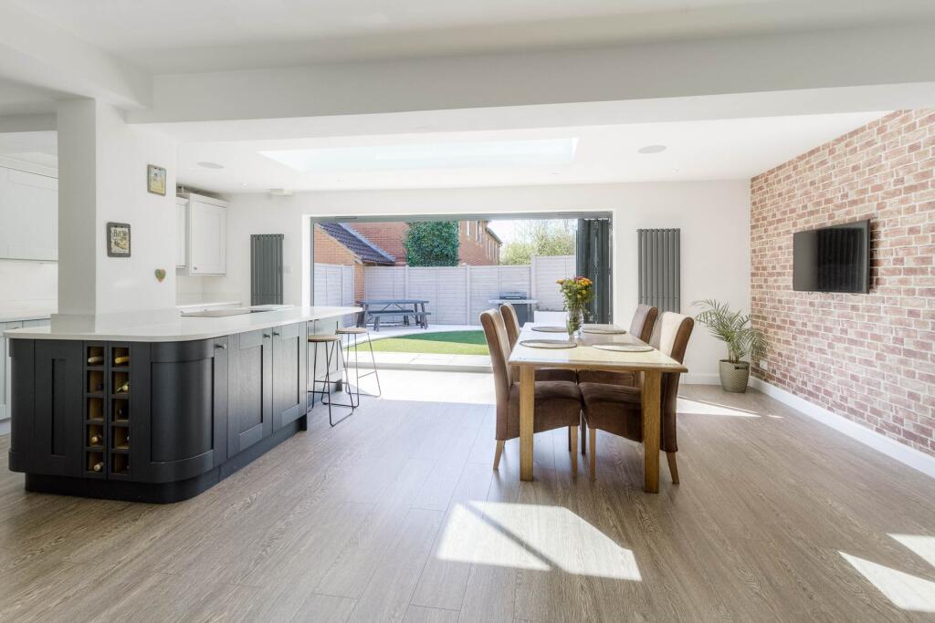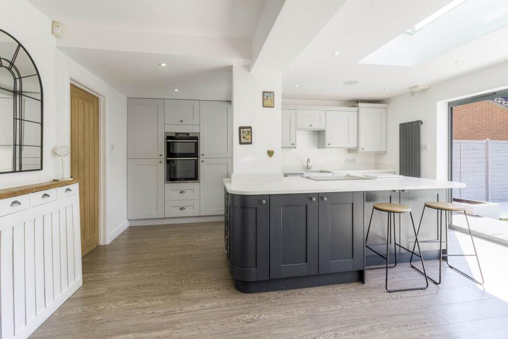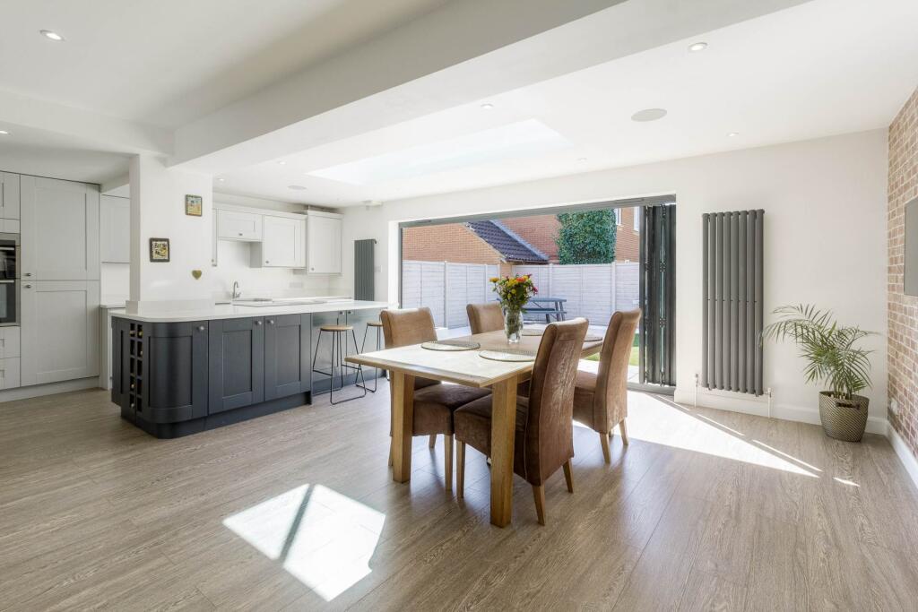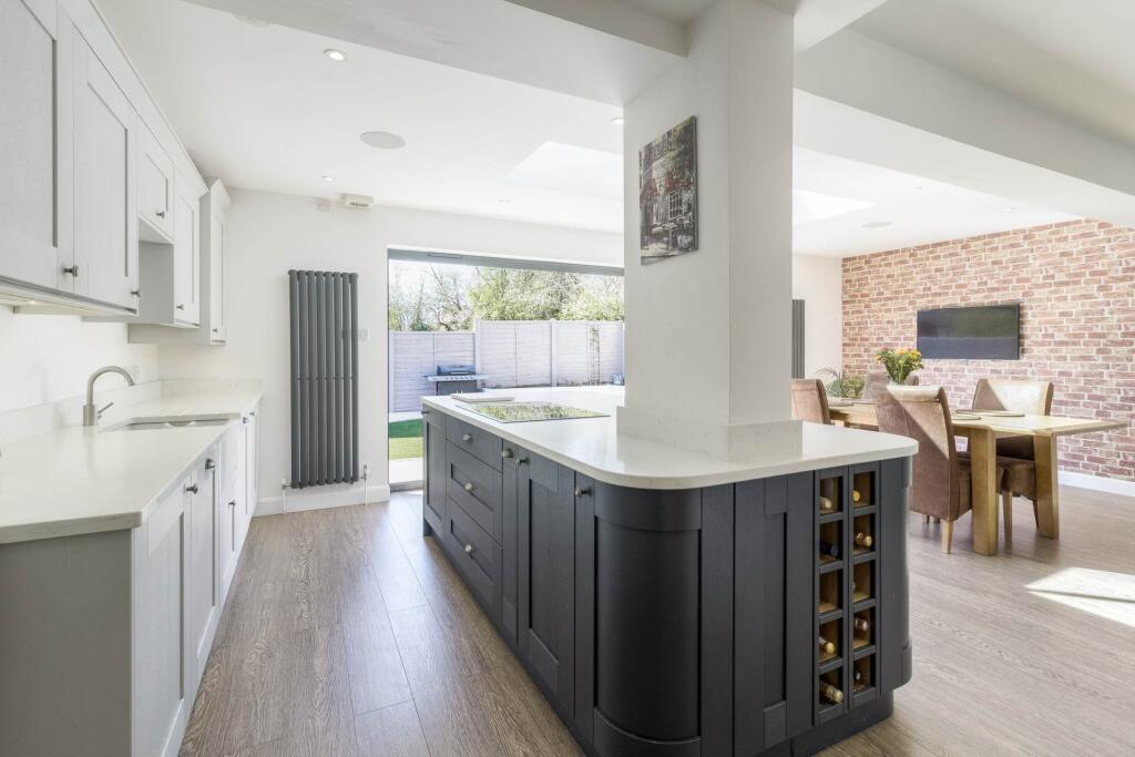 This property is a 4-bedroom, 3-bathroom detached house located in Shenley Brook End, Milton Keynes. The property has undergone a significant extension and modernisation, resulting in a contemporary and well-presented interior. The kitchen is a particular highlight, featuring a modern design, ample space, and bi-fold doors opening onto the garden. The garden itself is relatively small but well-maintained, with artificial turf and a patio area. The location is convenient, with good access to local schools and transportation links. However, the plot size is quite small compared to other properties in the area and the average price per square foot is above average.