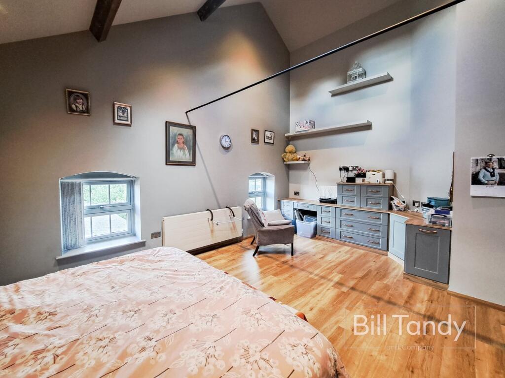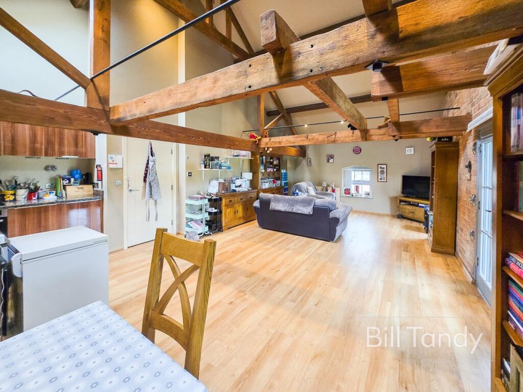 This property is a two bedroom, two bathroom apartment located in Lichfield, Staffordshire. The apartment is situated in a converted mill building and benefits from exposed beams and high ceilings, giving it a unique character. The location is convenient, with nearby transportation links and schools. The apartment appears to be in good condition, with a modern kitchen and bathrooms. However, there is no outdoor space.