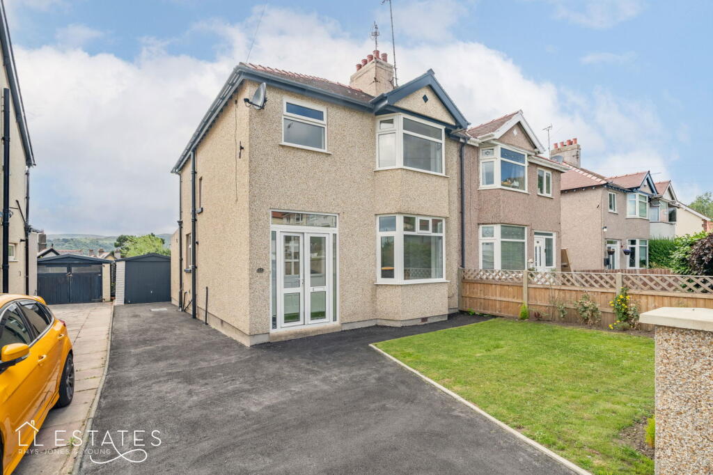 Spacious 3-bed semi in quiet Deganwy location with green and mountain views. Features two reception rooms, kitchen with dining space, private garden, driveway, and detached garage. Walking distance to village, beach, and transport. Offered with no onward chain.
