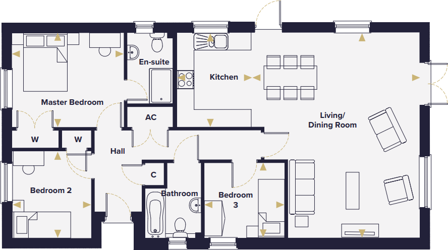 The Haughly is a superb 3 bed DETACHED BUNGALOW overlooking GREEN OPEN SPACE with a garage and parking for two cars. Inside you'll find an OPEN PLAN kitchen/living/dining area, SEPARATE LIVING ROOM and TWO DOUBLE BEDROOMS