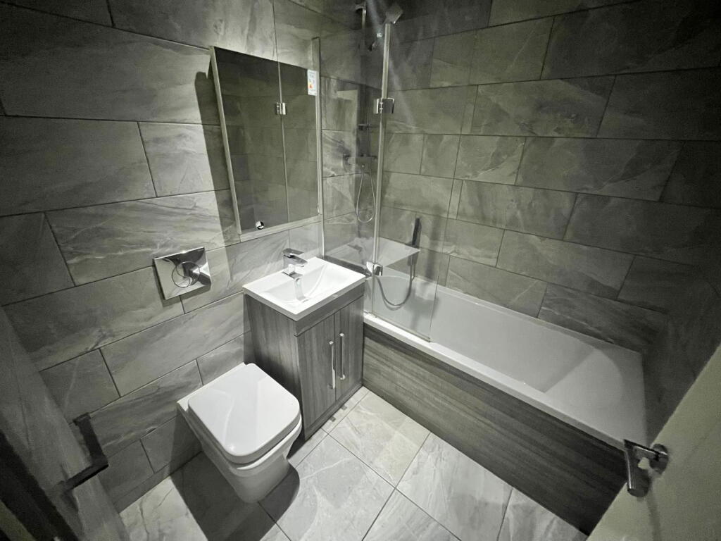 This 1-bedroom apartment is offered part-furnished Key Features: Modern Open Plan Lounge/Kitchen: Includes an integrated fridge freezer and washing machine The lounge has grey carpets, white walls, and modern furniture. Modern Bathroom: Fully tiled with a vanity unit sink, bat...
