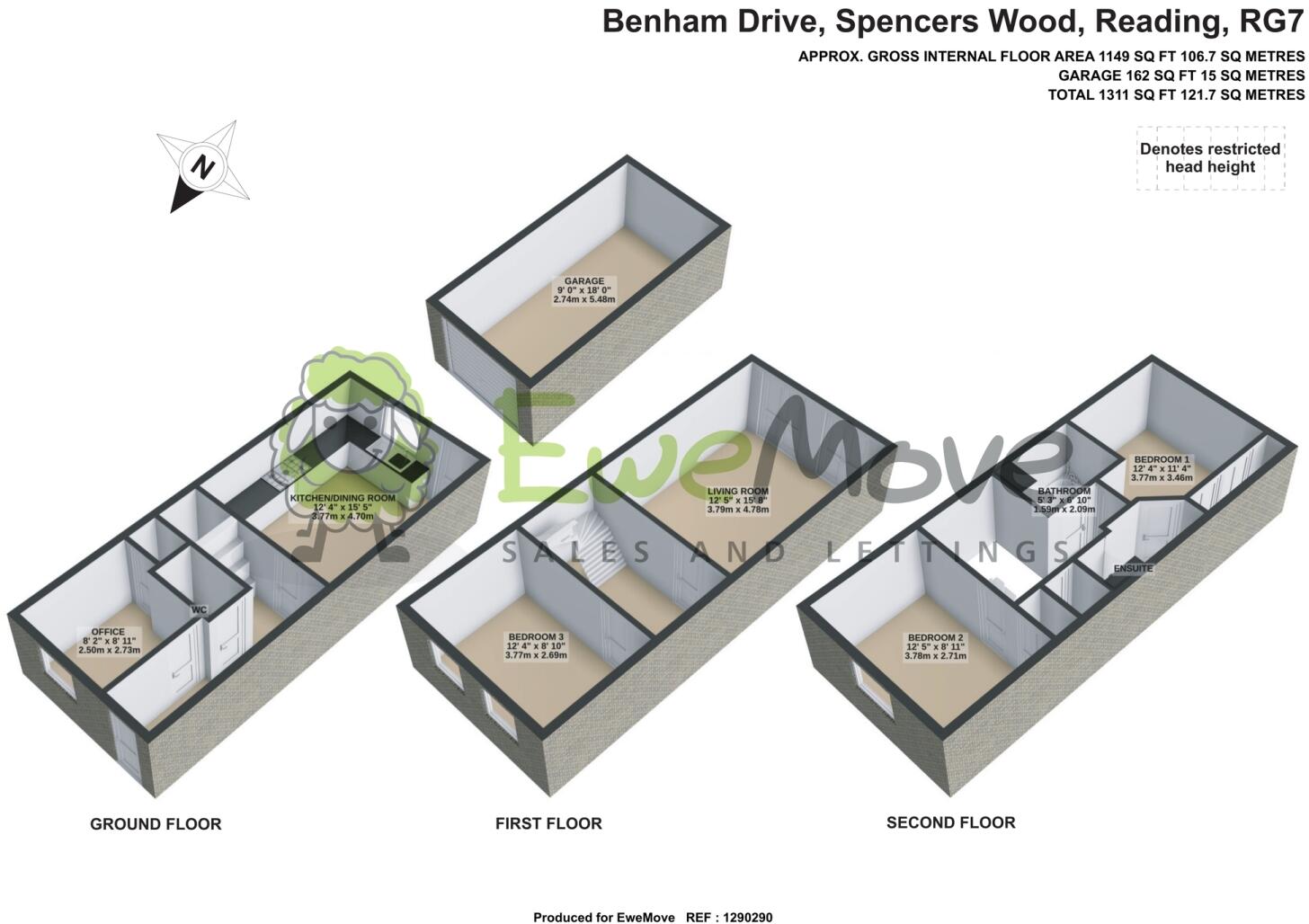 EweMove - A superb three double bedroom town house located in the popular area of Spencers Wood. The property offers a spacious kitchen/dining room, separate office, a master bedroom with a modern ensuite, a south facing rear garden and garage with off road parking.