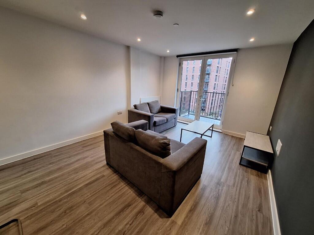 Available NOW! For Living presents a furnished 2-bedroom apartment with a private balcony in the Dock 5 development, Salford. No Deposit Option Available.
