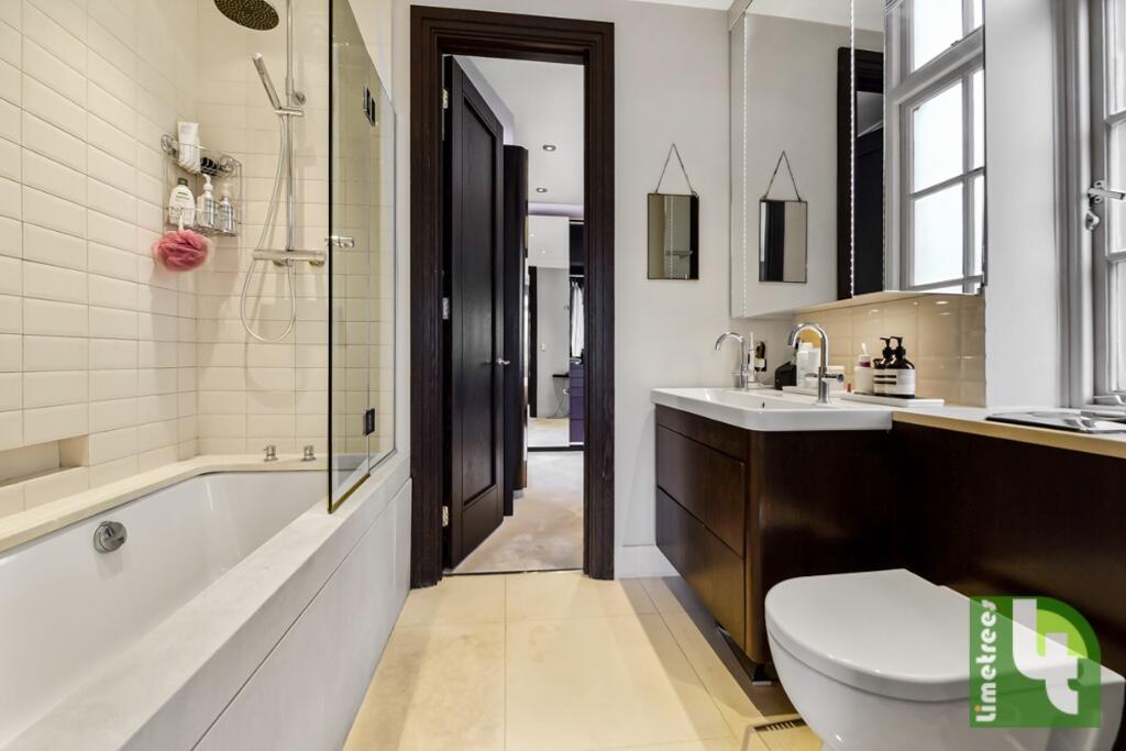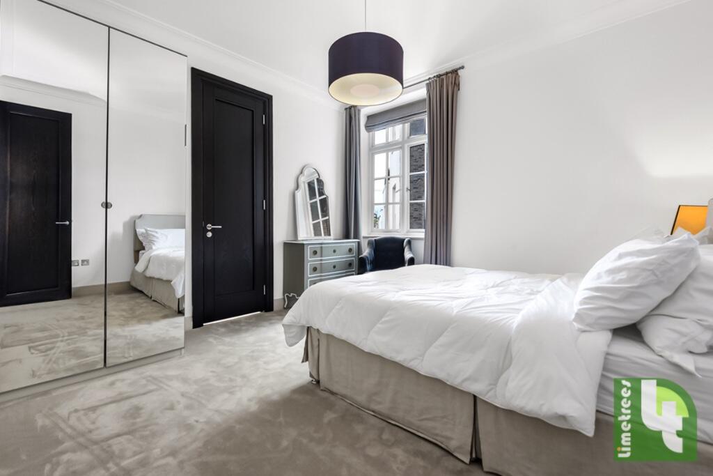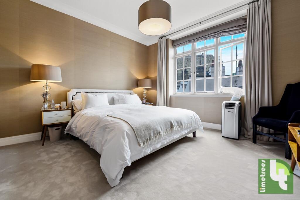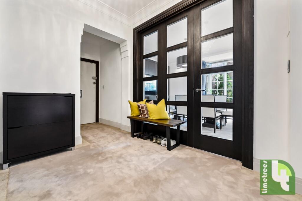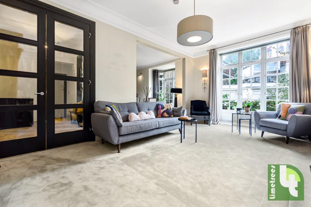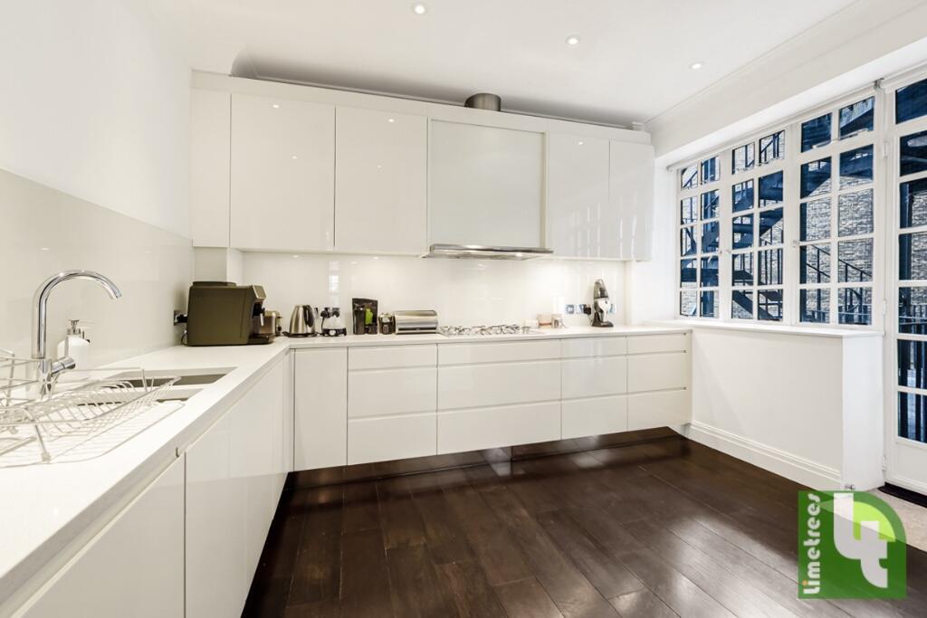 A refurbished flat on the first floor in this portered and secured mansion block. The property comprises of 2 double bedrooms, 2 bathrooms (1 en-suite) and a guest WC. 1 large reception and dining area with a separate kitchen and a Juliette balcony.