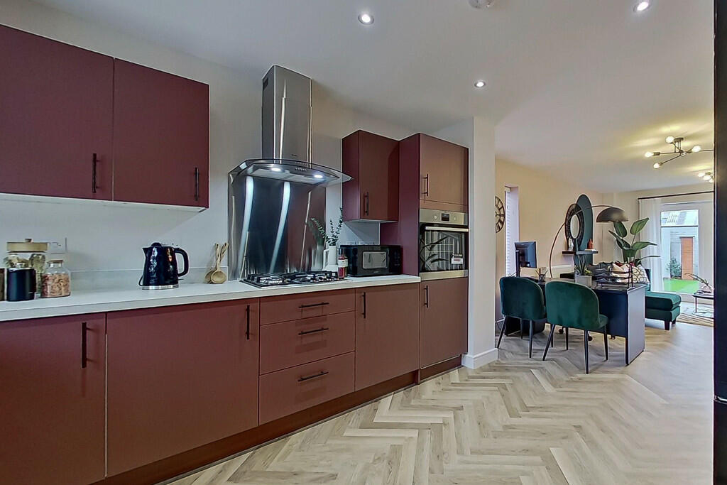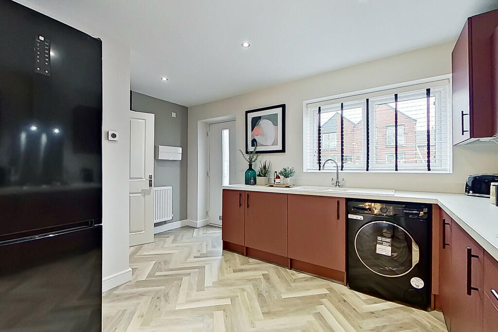This three-bedroom, two-bathroom end-of-terrace house is located in The Mews, Tolsons Mill, Fazeley, Staffordshire. The property is a new build, presented in excellent condition and boasts a modern, stylish interior. Images show high-quality finishes, modern appliances, and a good-sized open-plan living, dining and kitchen area. The property also benefits from a private garden and allocated parking. The location is convenient, with relatively close proximity to both Tamworth and Lichfield, as well as a nearby ‘Good’-rated primary school (Millfield Primary School). Transport links to Tamworth and other areas are relatively close, however the overall range of amenities in Fazeley itself might be more limited. The price is in line with other new build houses in the local area, suggesting reasonable value, however, a detailed comparison to other properties in the area is impossible due to a lack of complete data in the local comparison listings.