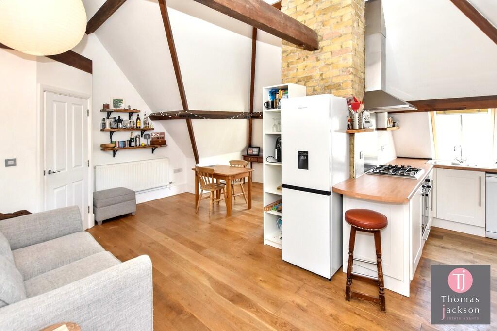 Nestled within the storied walls of a historic property in Ramsgate, this exquisite loft apartment offers a unique blend of period charm and contemporary living. Ascend to discover a captivating open-plan reception room, thoughtfully designed to seamlessly integrate distinct dining, living, and k...