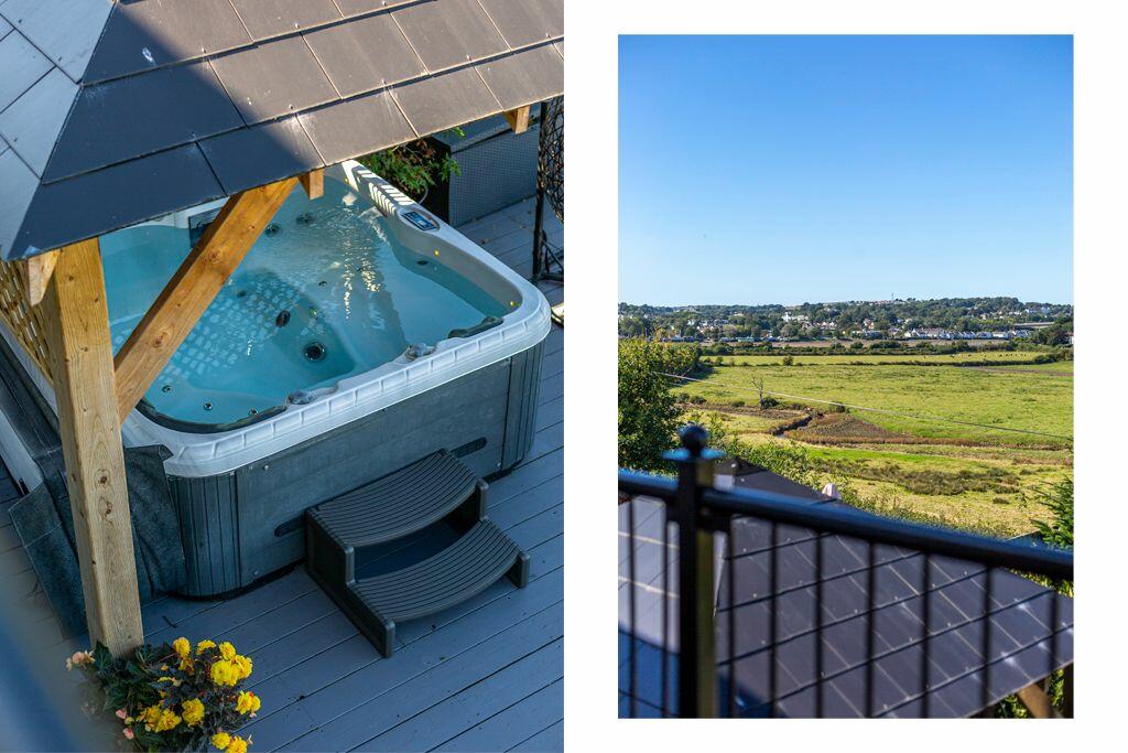 This five-bedroom, three-bathroom detached property in Donn Gardens, Bideford, offers a modern and well-maintained interior with a contemporary design. The kitchen is a particular highlight, featuring modern appliances and a stylish layout. The property benefits from stunning views of the surrounding countryside and River Torridge. The exterior features a substantial deck area with a hot tub and gazebo, creating a relaxing outdoor space. However, the provided plot size is missing, and the list price of £495,000 appears to be at the higher end of the market for the area, although the size and views are likely contributing factors to this price. Nearby schools, including a ‘Good’-rated primary school, are within walking distance, providing a family-friendly aspect. More information regarding local transportation links and the precise plot size would be beneficial for a complete assessment of the property’s value and overall desirability.