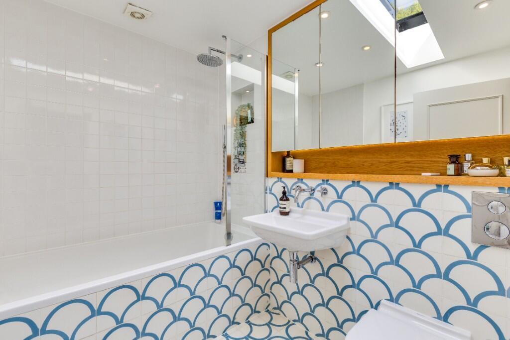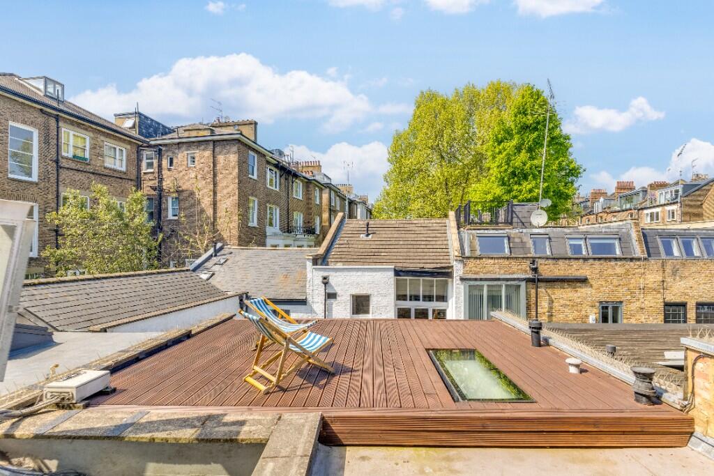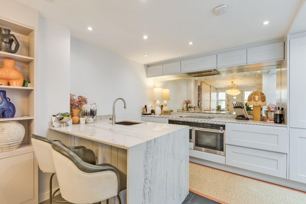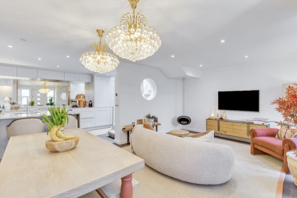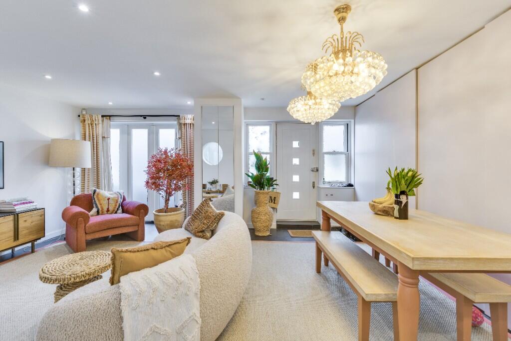 This property is located in the highly desirable Belsize Park area of London. The area is known for its excellent schools, transport links and proximity to Hampstead Heath. The property itself is a beautifully presented two bedroom mews house that has been recently renovated to a high standard. The images show a modern, stylish interior with a well-equipped kitchen and two contemporary bathrooms. There is also a private roof terrace, a rare feature in this location. The asking price is below the average price for the area, suggesting it may represent good value for money, however, the lack of square footage data makes it difficult to assess this accurately. The nearby properties show a range of prices, with some significantly higher and some lower than the asking price of this property. This suggests that the pricing is potentially competitive.