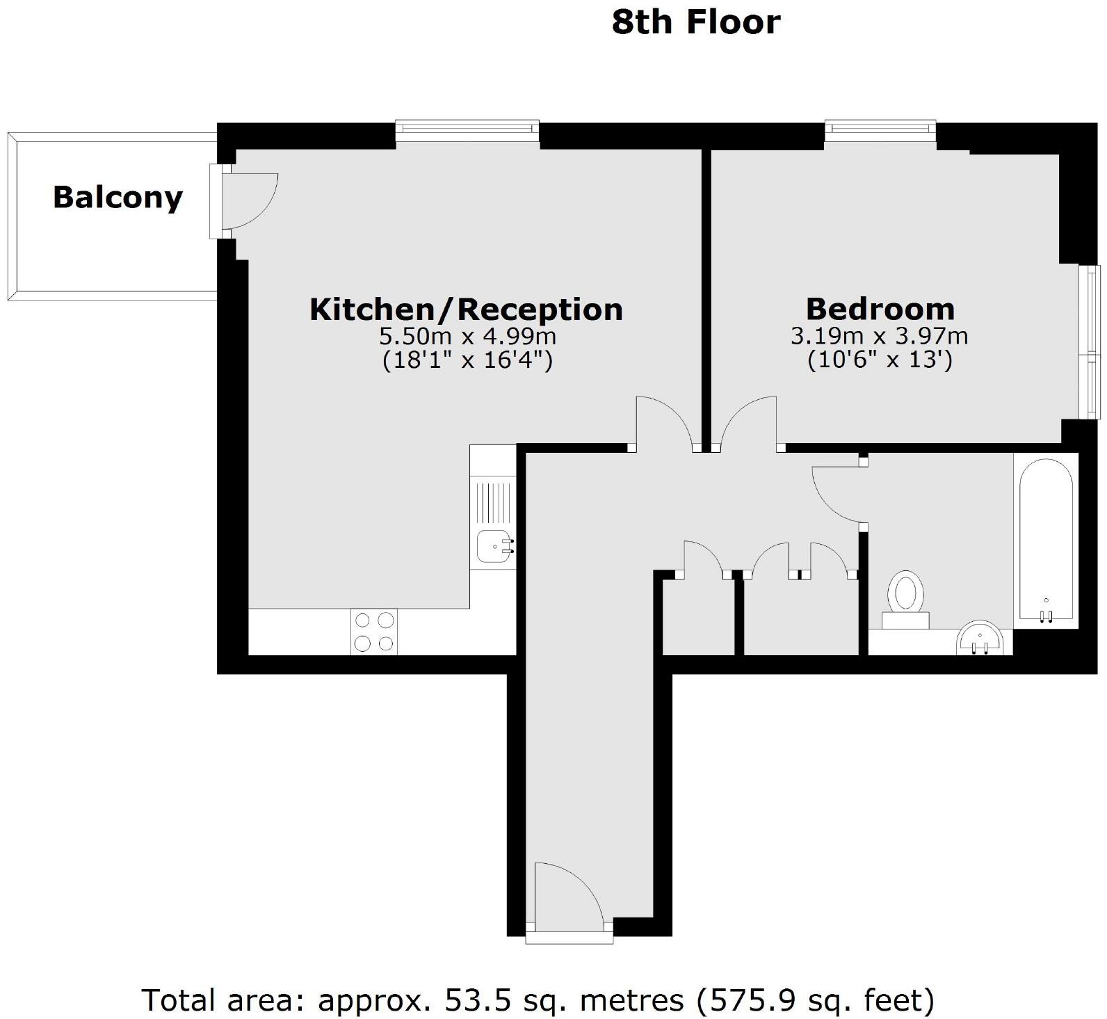 A well-presented one bedroom property located in a new build development. This eighth floor unit offers a private balcony, dual-aspect windows and open plan living. The block also has access to concierge service and on-site gym.