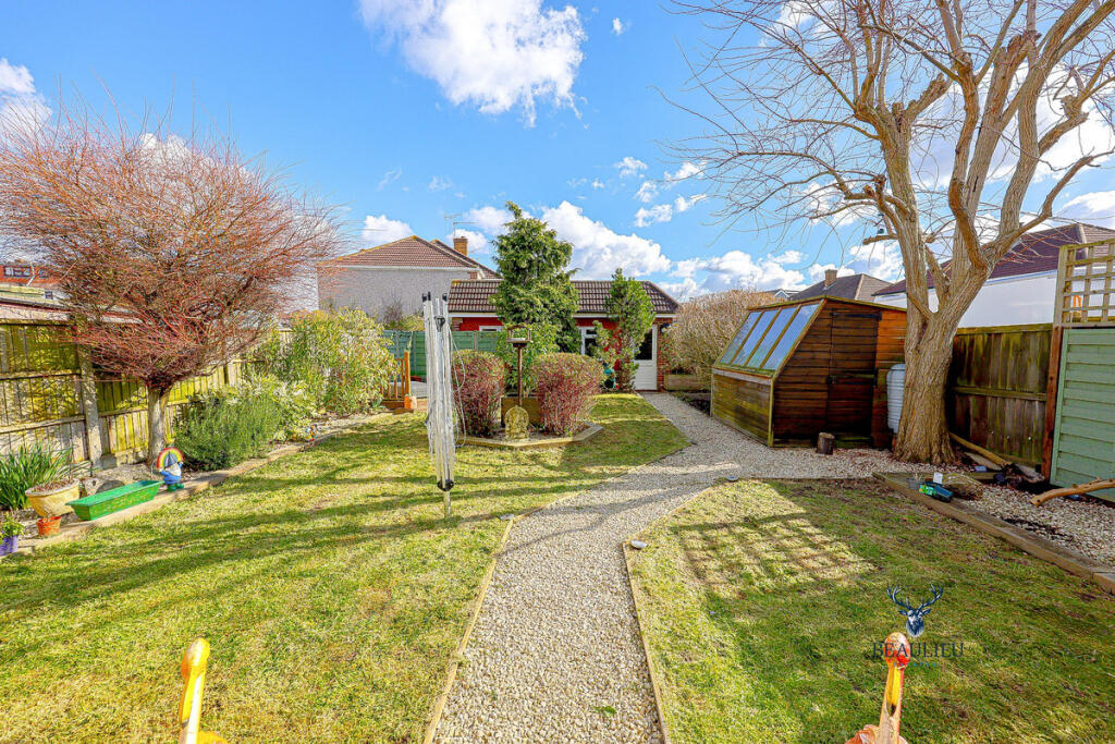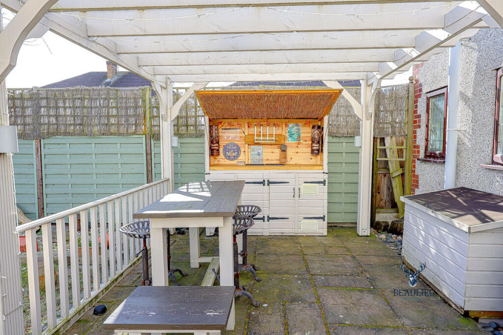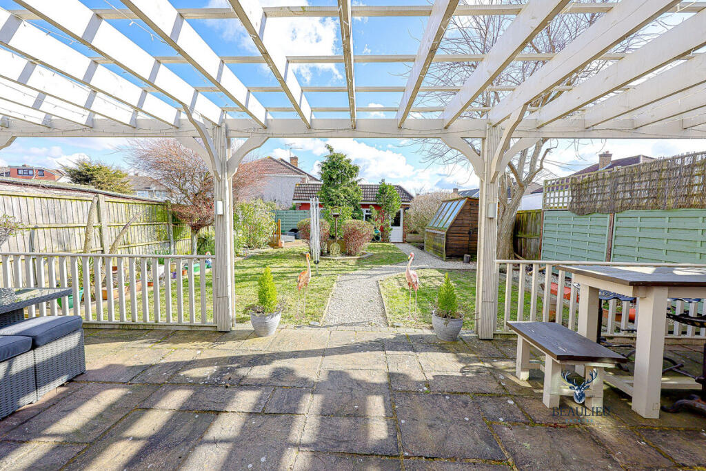 The property includes a substantial garden, which is a significant feature, adding to its appeal. The garden is well-maintained and includes a pergola, patio area, shed and a sun room. The size of the plot suggests ample outdoor space.
