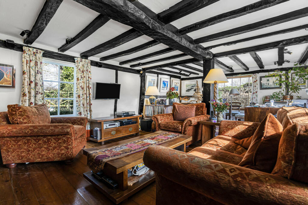 This charming Grade II listed thatched cottage presents a unique opportunity in the sought-after village of West Hagbourne, Oxfordshire. The property exhibits a delightful blend of period features and modern enhancements, creating a comfortable and stylish living space. The exposed beams, characteristic of properties of this era, add significant character. The kitchen looks modern and functional, while the bathrooms appear recently updated and well-equipped. A considerable portion of the property’s allure stems from its extensive and immaculately maintained garden, which includes various landscaping elements including well-kept lawns, intricate hedging and thoughtfully placed plants. The presence of a well-maintained outbuilding provides additional storage or workspace. The inclusion of a large garden, modern updates, and desirable location would appeal to families and buyers seeking period charm combined with contemporary convenience.
