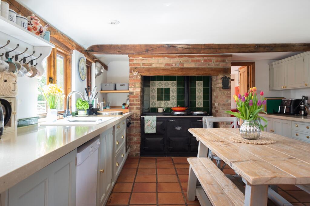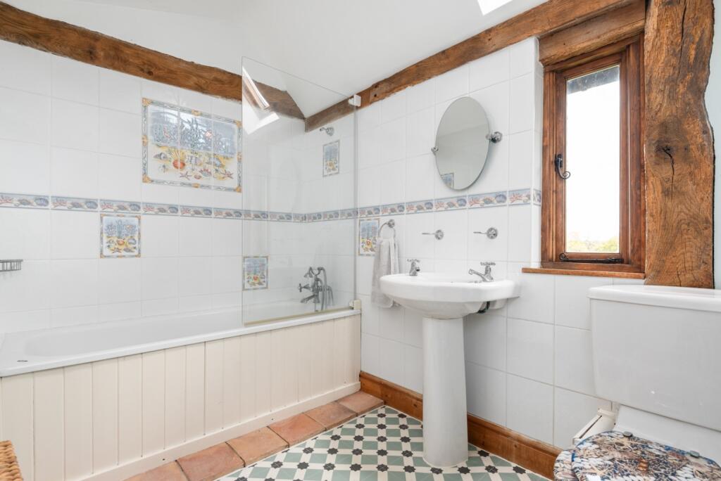 Converted 17th century barn with original features throughout including exposed beams, brick & inglenook fireplace. 2 bedroom annexe with shower room. Large living/dining room, sitting room & study. 4 bedrooms & 3 bathrooms. Beautiful SW facing garden & driveway parking for several vehicles.