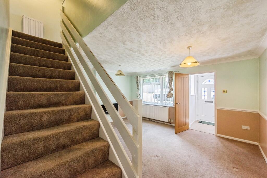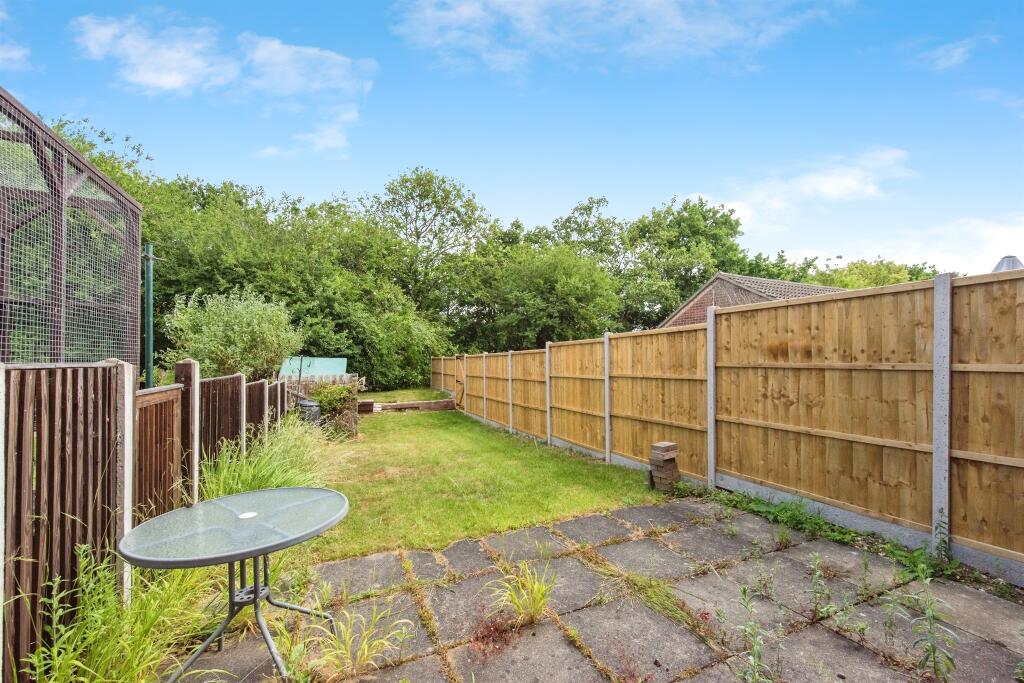 This mid-terraced house in Stowmarket is ideal for first-time buyers and investors, featuring a lounge with an electric fireplace, a kitchen with French doors to an enclosed garden, three bedrooms, a family bathroom, a garage, and allocated parking, all with no onward chain.
