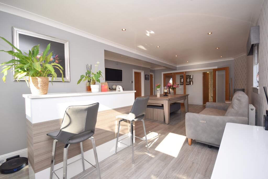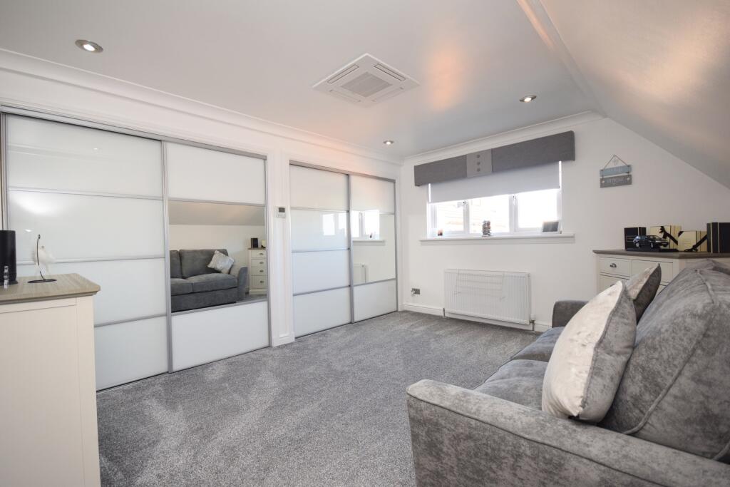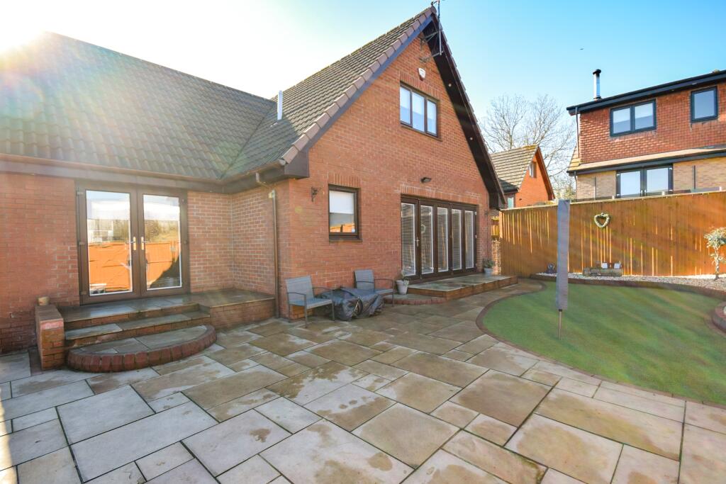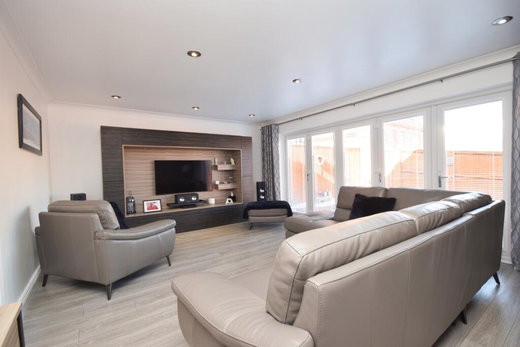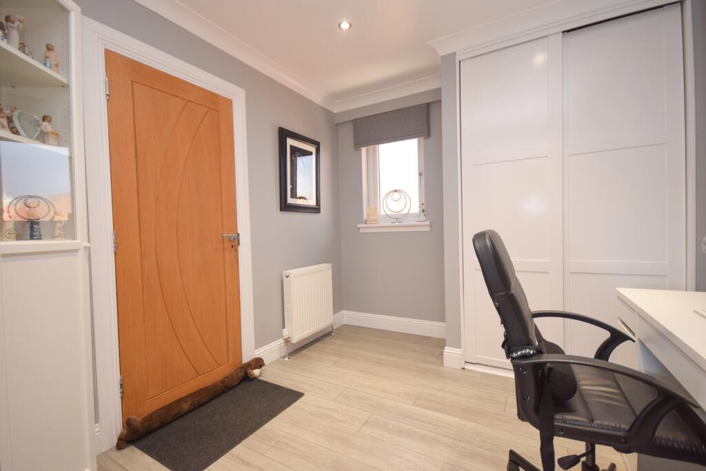 Nestled in the peaceful enclave of Herbiston Court, this elegant four-bedroom house in Larkhall is a sublime find in South Lanarkshire, ML9. Tailored to meet the desires of a discerning family, the property boasts a refined blend of luxury and comfort.