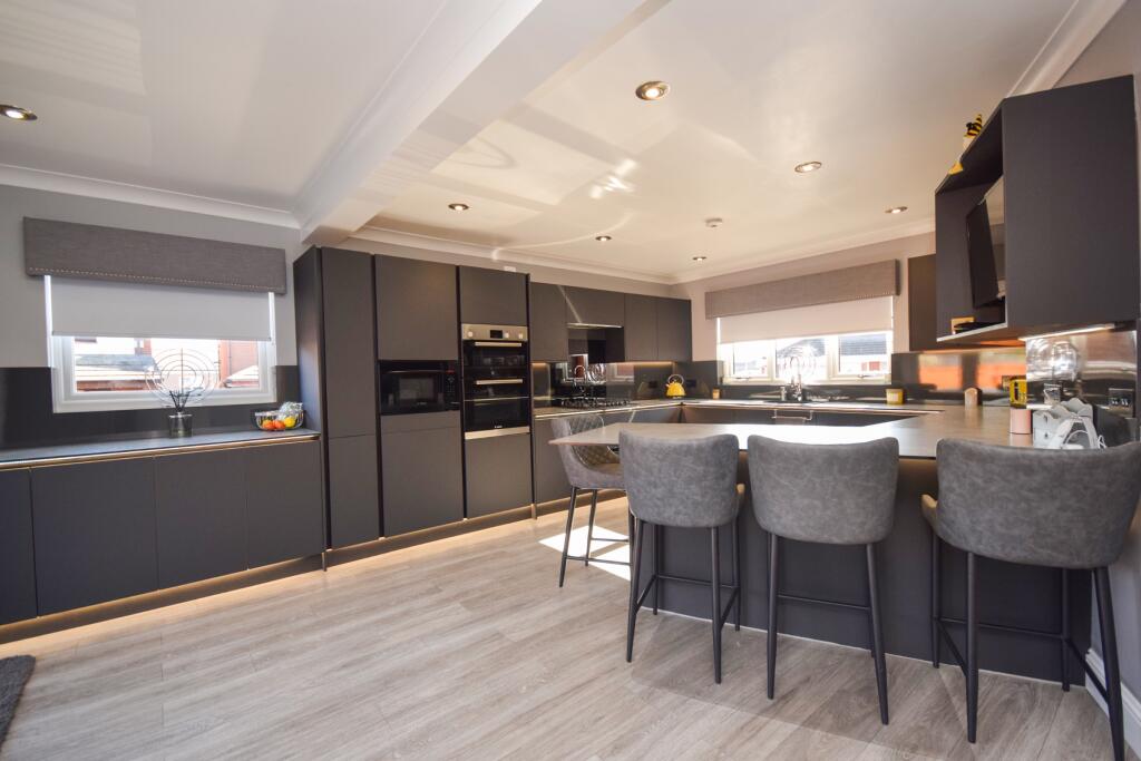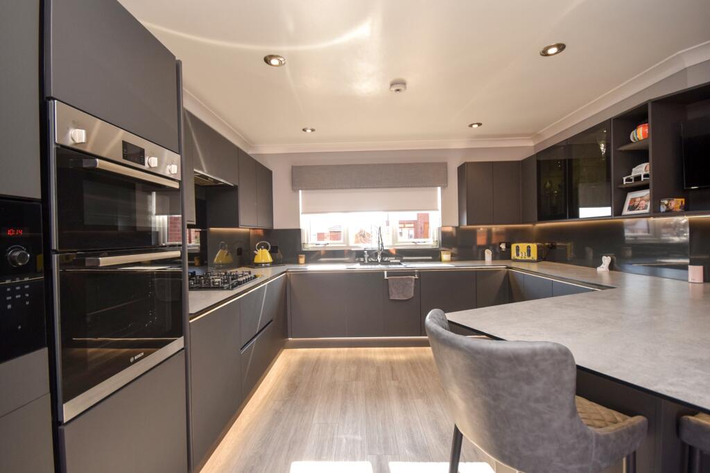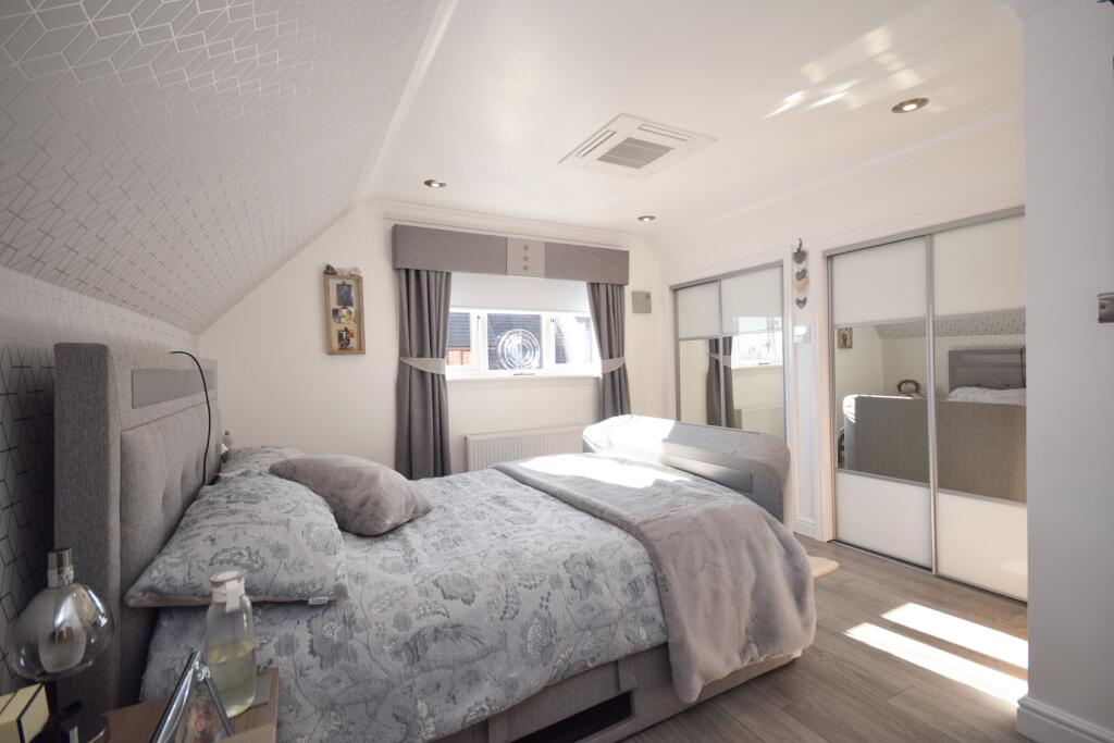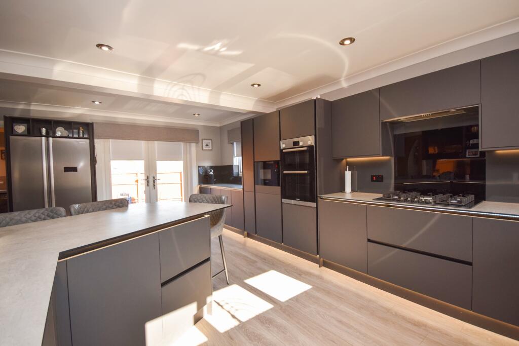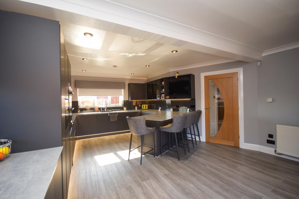 Nestled in the peaceful enclave of Herbiston Court, this elegant four-bedroom house in Larkhall is a sublime find in South Lanarkshire, ML9. Tailored to meet the desires of a discerning family, the property boasts a refined blend of luxury and comfort.
