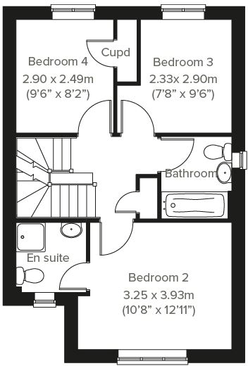The Greenwood is a four-bedroom, three-bathroom home. The ground floor includes a kitchen/dining room, living room, utility, WC and storage cupboard. The second floor consists of three bedrooms, one of which is en suite, and a bathroom. En suite bedroom one is on the top floor of this family home.