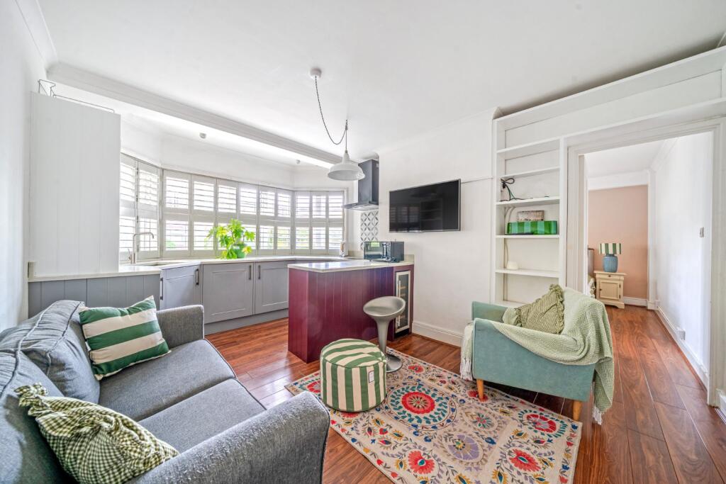 This bright & recently refurbished ground floor flat includes hot water and heating in the service charge and beautiful wooden flooring throughout. There are two bedrooms: one large main bedroom with fitted wardrobes and one single bedroom. The property is offered to the market chain free.