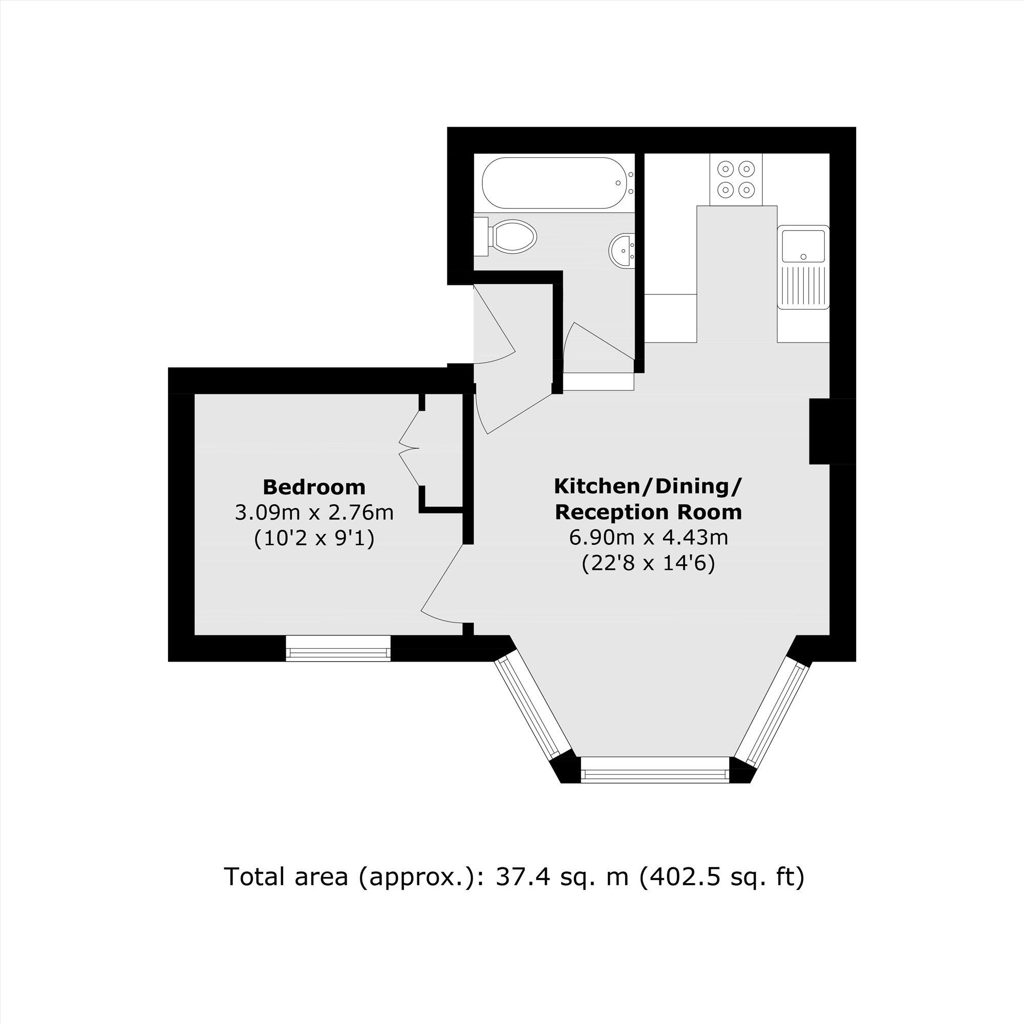 This is a one-bedroom flat located on Mowbray Road in Brondesbury Park, London. The property is in a good location, with access to transportation, schools, and local amenities. The flat itself appears to be in good condition, with a modern kitchen and bathroom. The property also benefits from a large communal garden. The asking price of £425,000 seems reasonable given the location, condition, and size of the property. The flat is approximately 402.57 sqft.