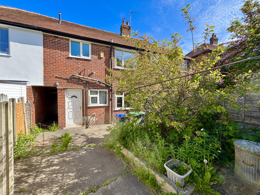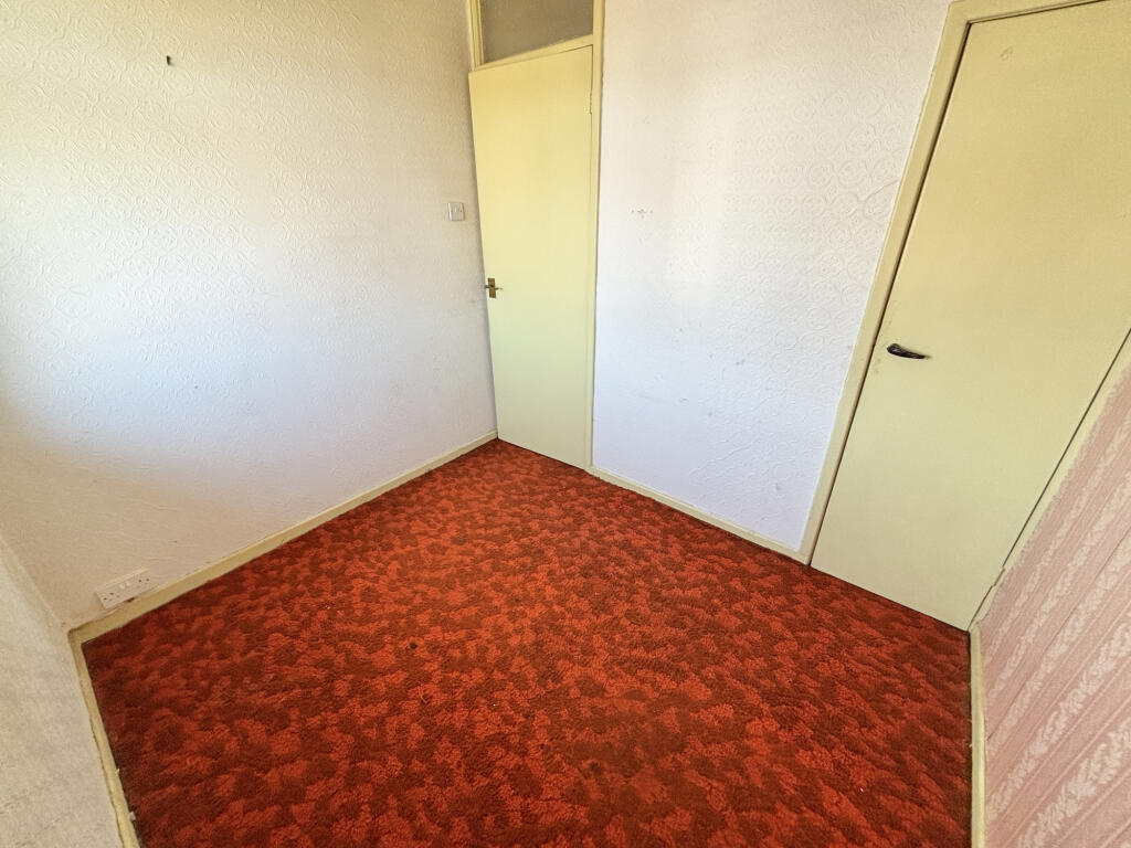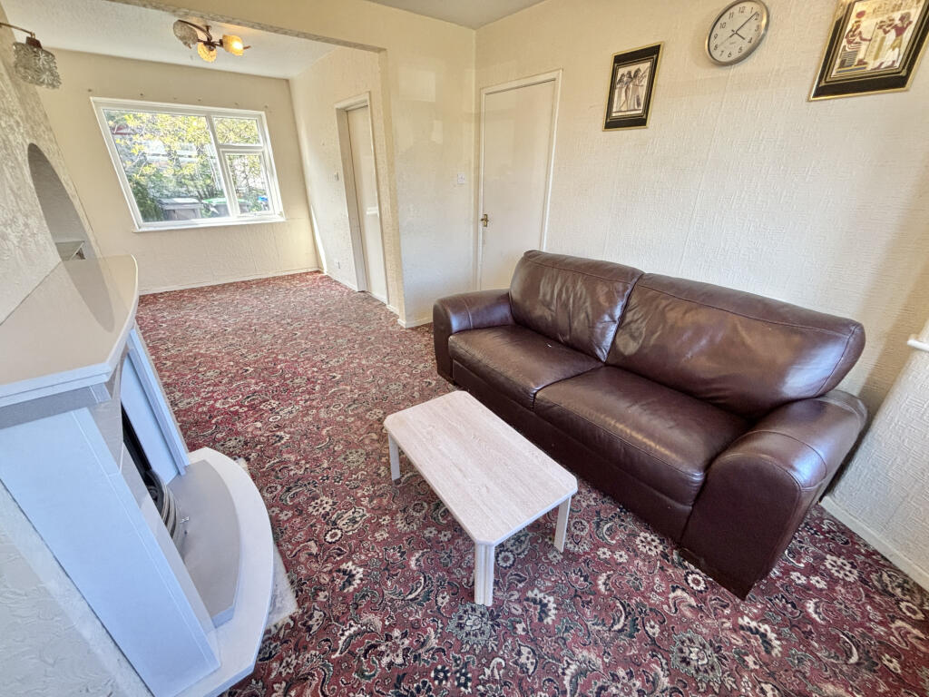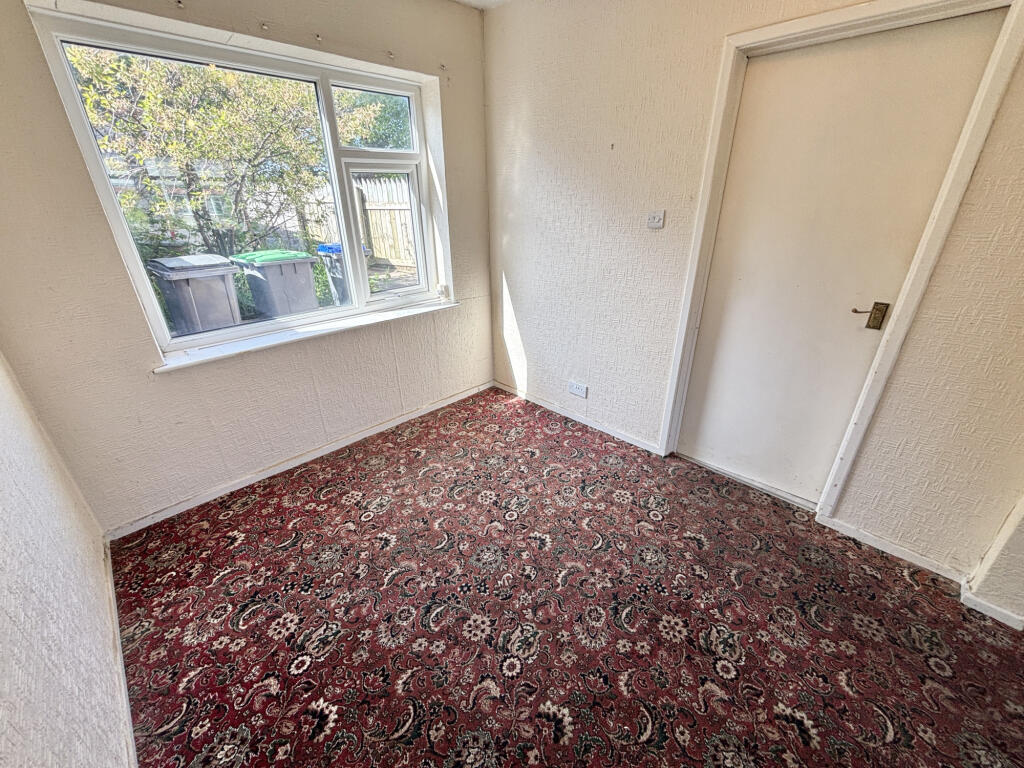 The property itself appears to be in need of some modernisation. The interior images show dated decor and carpets throughout. While the bathroom appears recently updated, the rest of the house would benefit from refurbishment to enhance its overall condition and appeal to potential buyers. The small garden area at the rear of the property provides some outdoor space, although it also requires attention.