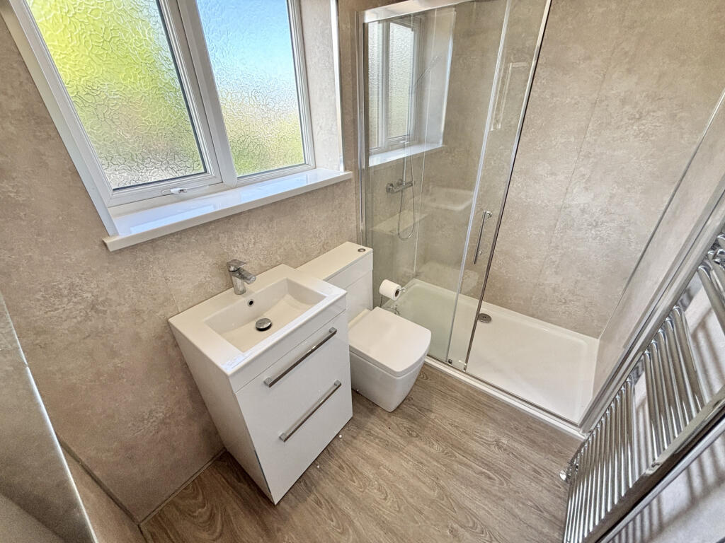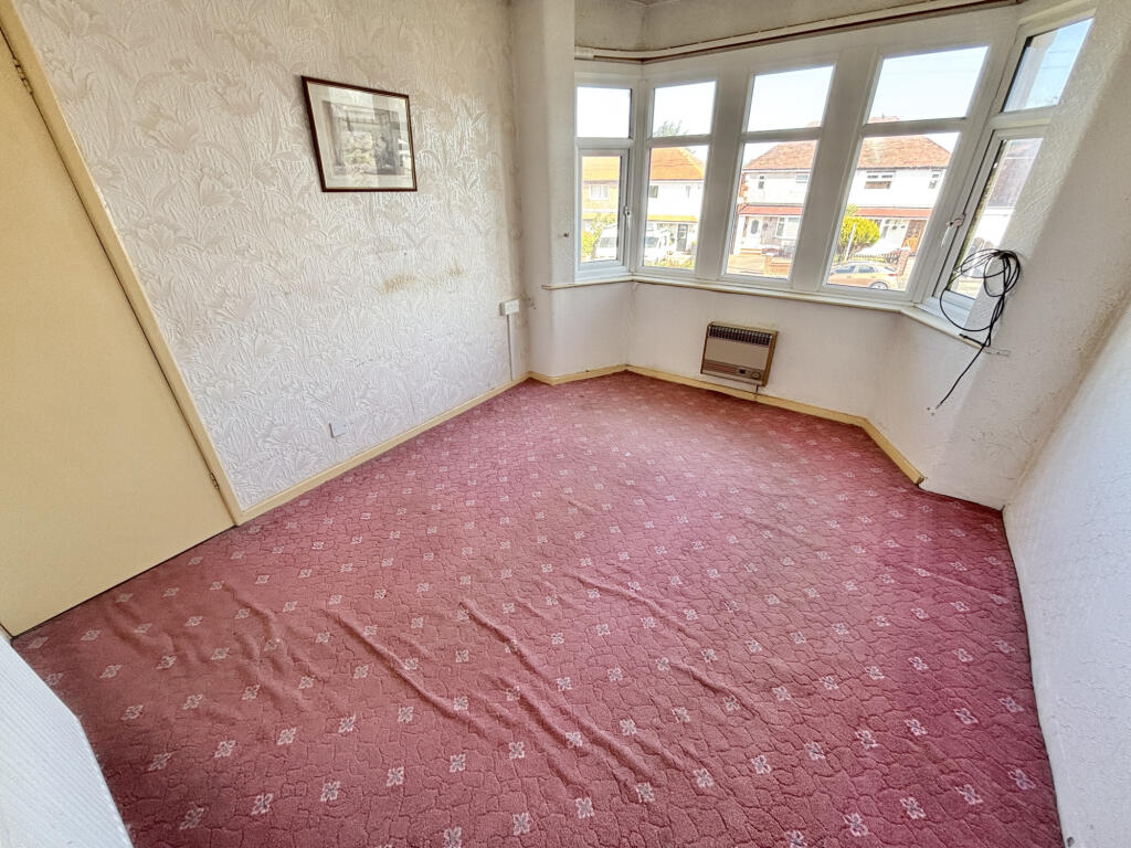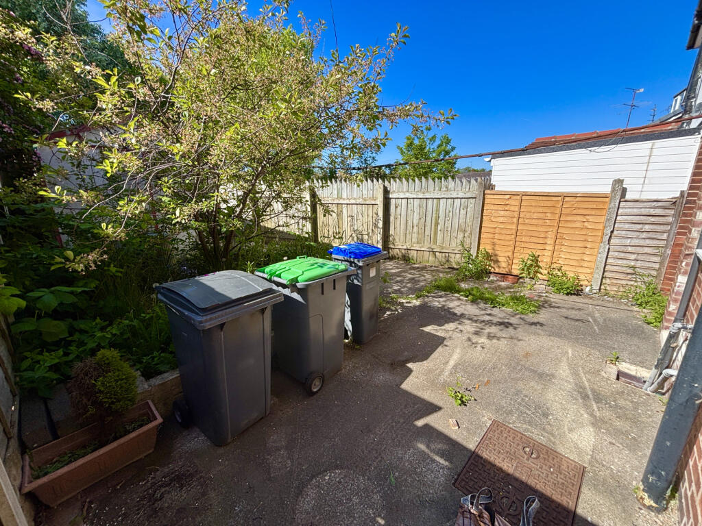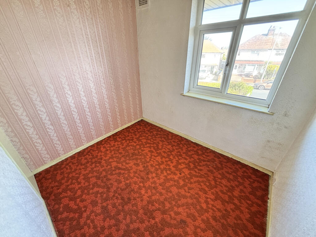 The property itself appears to be in need of some modernisation. The interior images show dated decor and carpets throughout. While the bathroom appears recently updated, the rest of the house would benefit from refurbishment to enhance its overall condition and appeal to potential buyers. The small garden area at the rear of the property provides some outdoor space, although it also requires attention.