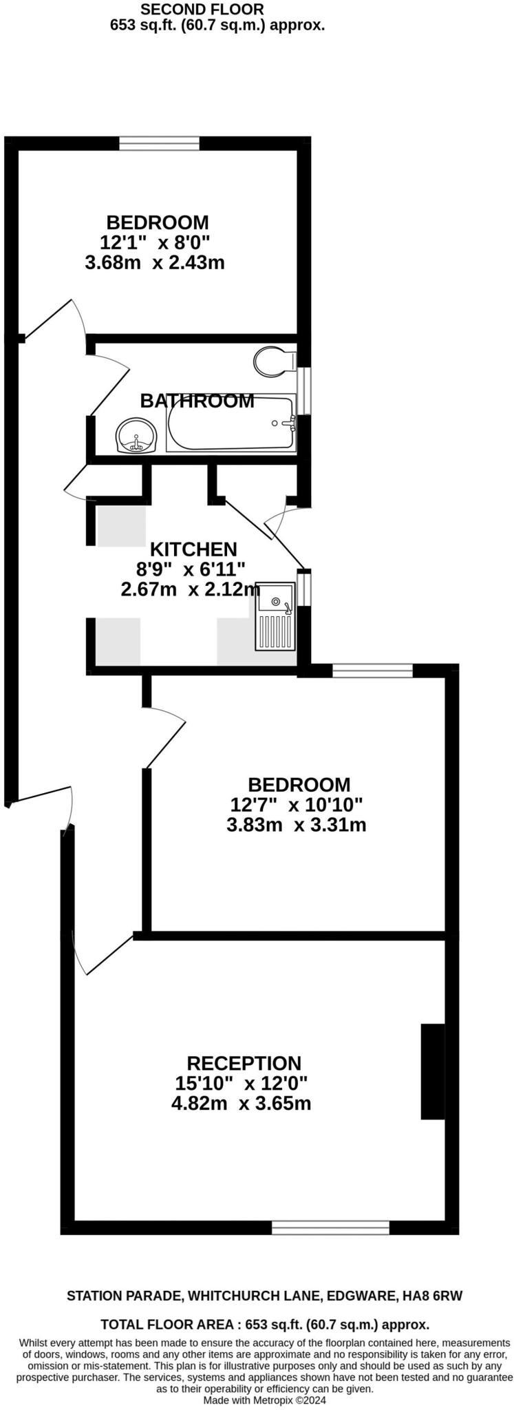 This is a 2-bedroom flat located on Station Parade, Whitchurch Lane, Edgware. The property is situated in a convenient location with access to local amenities and schools. However, the property appears to be in need of renovation, particularly the kitchen and bathroom. The asking price of £250,000 seems reasonable given the location and size of the property, and the fact that it is below the average price per square foot for the area.