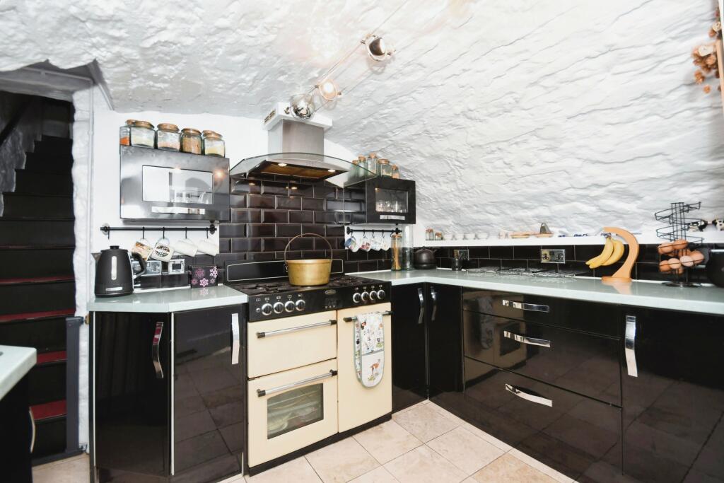 This two-bedroom, one-bathroom end-of-terrace property located on Church Street, Tintwistle, is presented as a charming stone cottage with period features. The property benefits from a substantial garden that extends to multiple levels; including a greenhouse, several seating areas and a wooded area.