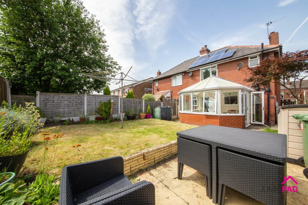 Updated 2-3 bed semi-detached home with a spacious living room, open-plan kitchen/diner, and conservatory. Benefiting from solar panels, Off-street parking, a generous rear garden, near Sankey canal.