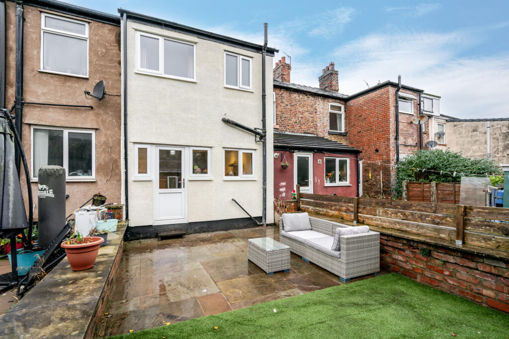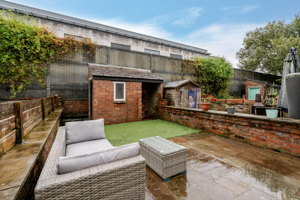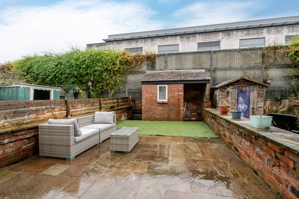 This is a two-bedroom terraced house located in Macclesfield Central. The property benefits from its central location, providing easy access to local amenities, transportation, and schools. The house features a modern kitchen, but the bathroom is dated, and the attic is unfinished, indicating a need for some renovation. The property includes a rear garden with a paved area and sheds. The asking price of £189,950 appears reasonable when compared to the average price per square foot in the area, making it a potentially good value for buyers willing to undertake some improvements.