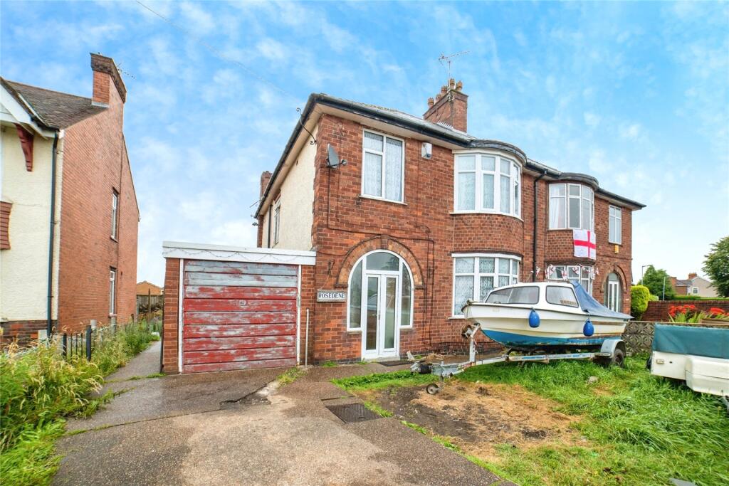 This semi-detached property is located on Coronation Street in Sutton-in-Ashfield, Nottinghamshire. It features 3 bedrooms and 1 bathroom within its 1,293.82 sqft. The average price per square foot in the area is £372.00, while this property is listed at approximately £108 per square foot. The average house price in the area is £221,400. The property is located near several schools, including Leamington Primary and Nursery Academy which has a ‘Good’ Ofsted rating. Sutton Parkway train station is 2.02 KM away. Based on the images, the property appears to need some renovation. The garden is overgrown and the garage door is in need of repair.