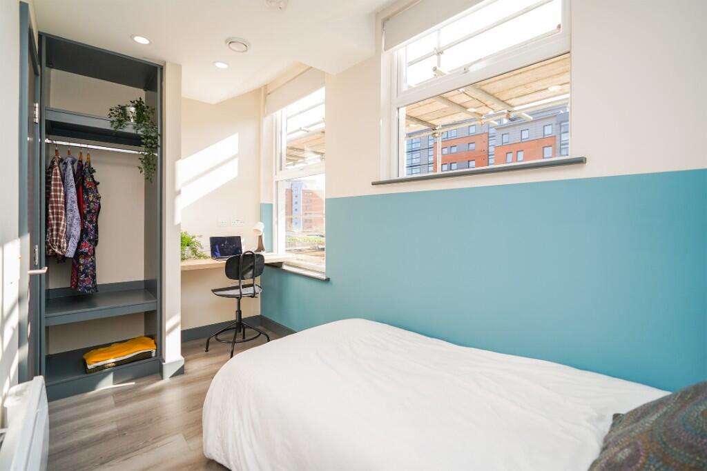 Beautiful ensuite in the desirable Kelham Island area. The room has a kitchenette, and co-living spaces such as laundry, a large kitchen, and social spaces. All bills, including super-fast broadband and council tax, are included