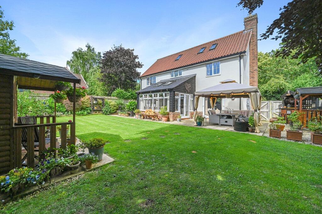 Hill House Lane offers a detached property in Needham Market, Suffolk. The house features four bedrooms and three bathrooms, making it suitable for families. The interiors are modern and well-maintained, with an updated kitchen and bathrooms. The property benefits from a good-sized garden, enhancing its appeal. While the asking price is above the local average, the condition and features of the house may justify the premium.