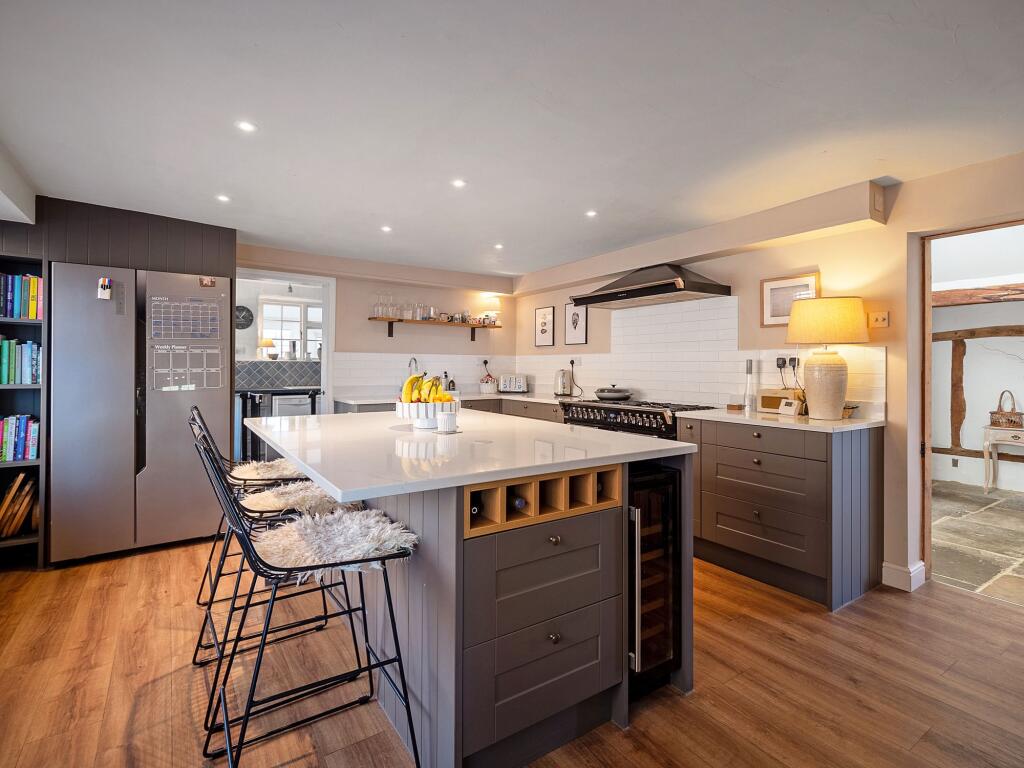 Tucked away just moments from both the Town Centre and the scenic riverside, The Old Chequers is a striking four-bedroom detached home that beautifully blends timeless charm with elegant, modern design.