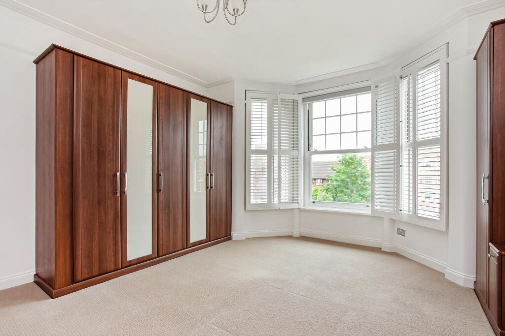 A wonderfully bright and airy three bedroom top floor apartment with generous and versatile accommodation and views over the communal gardens.
