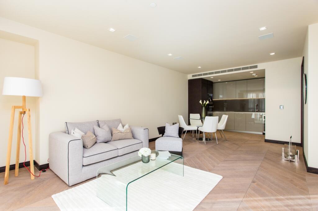 A one bedroom apartment with a balcony within this prestigious development primely located near Tower Bridge. The apartment includes a spacious open-plan living/kitchen space, fitted kitchen, herringbone wood flooring, floor-to-ceiling windows, bathroom finished in marble, ample stora...