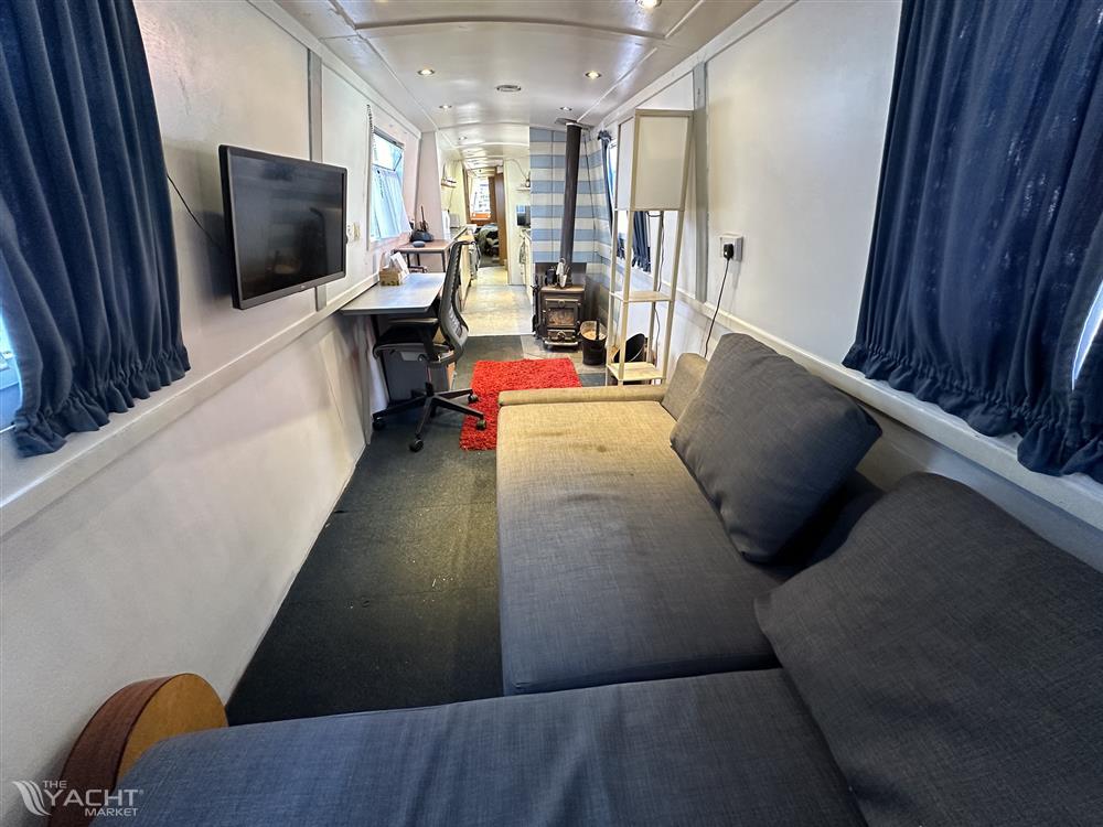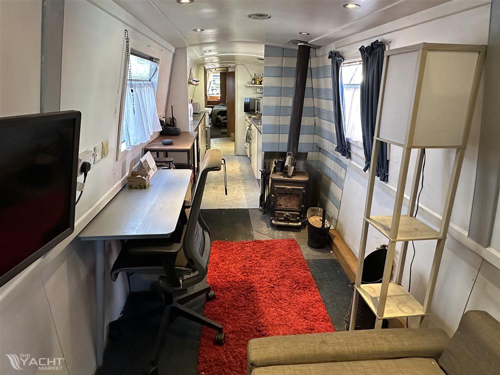 Information regarding the land is not available. The property is a narrowboat, so it doesn’t have a traditional garden.