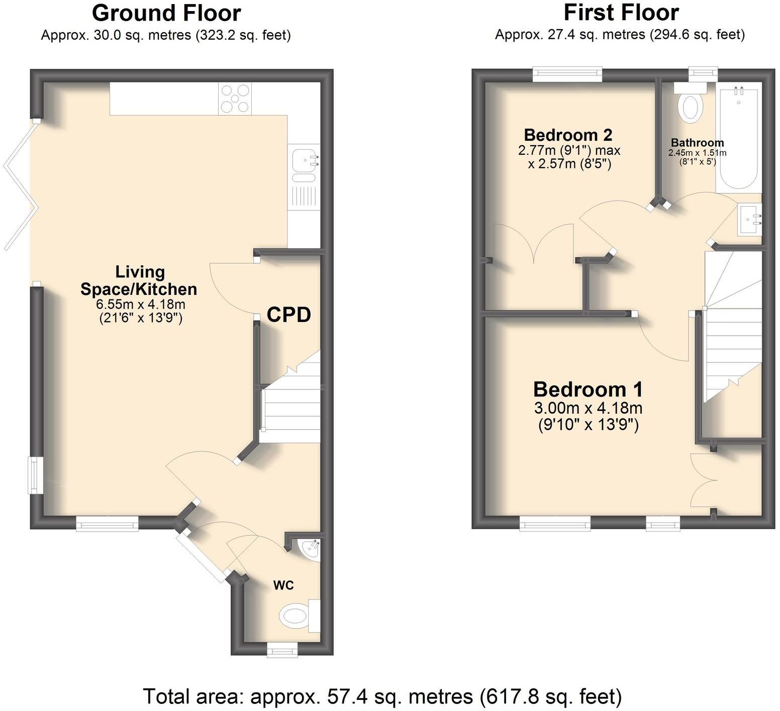Plot 4 is a quaint two-bedroom semi-detached home with a private outdoor terrace and driveway.