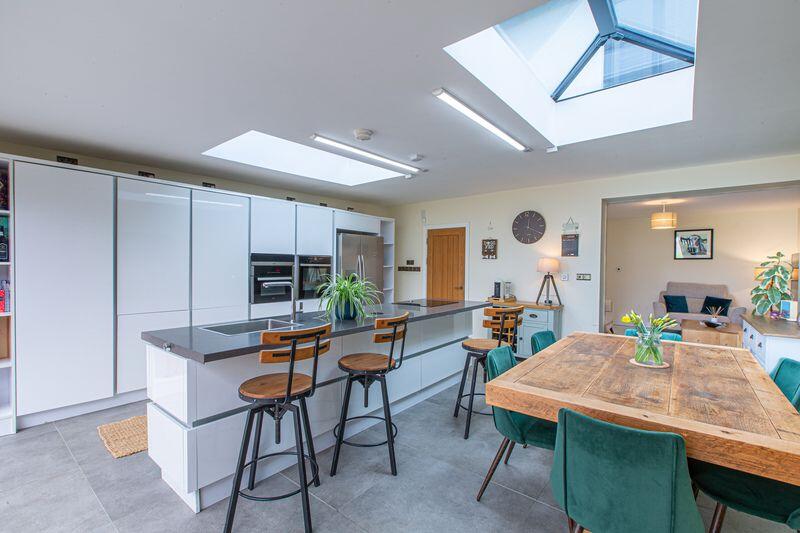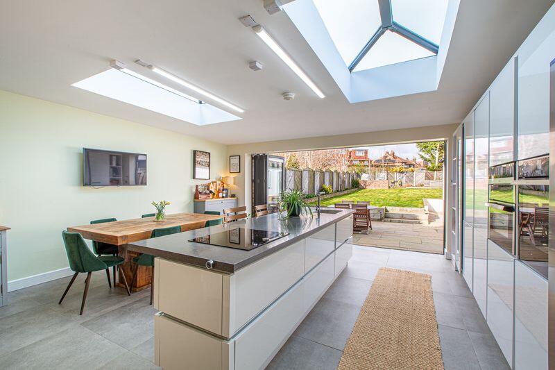 Based on the images provided, the property appears to be in excellent condition. It has been recently renovated or extended, with a modern kitchen and bathroom. There is also a well-maintained garden. The property benefits from a modern extension to the rear, creating a large open-plan kitchen/diner with bi-fold doors leading to the garden. The extension also includes skylights, allowing plenty of natural light.