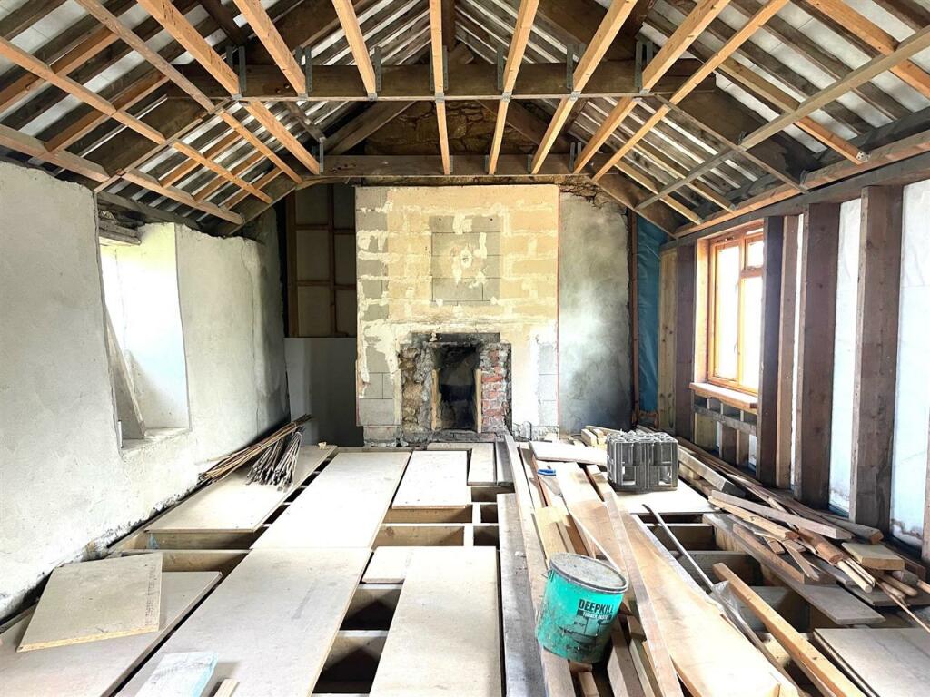 However, the property’s condition requires attention. The interior photographs reveal outdated fixtures and fittings, suggesting the need for renovation or modernisation to bring it up to current standards. The kitchen and bathrooms, in particular, seem to be in need of updating. The external appearance is more appealing and the attached barn, though currently under renovation, provides further potential for expansion or added value upon completion.