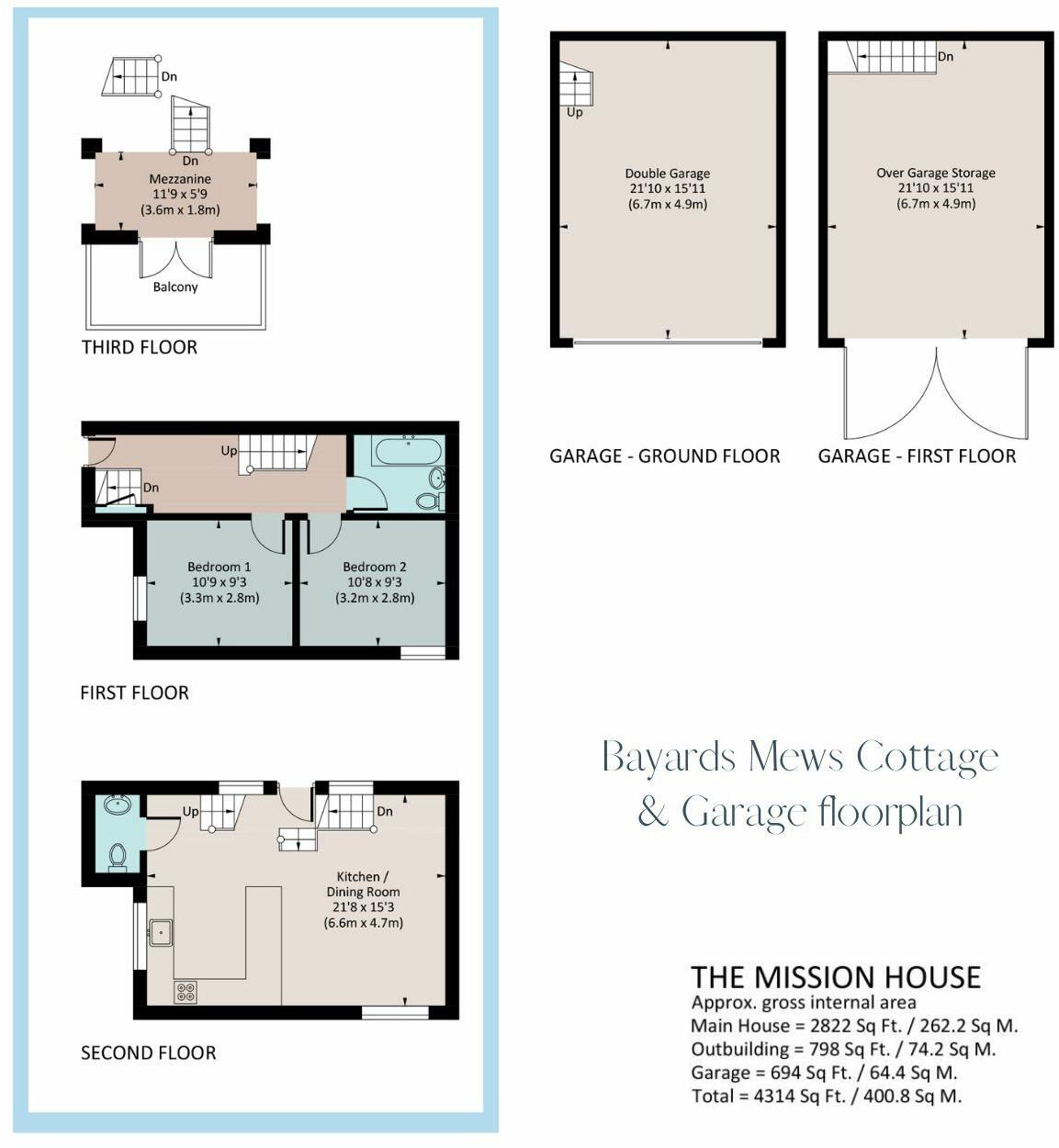 The property’s inclusion of a separate mews cottage and a large double garage, with a studio above, adds considerable value. This feature provides additional living space, ideal for guests or home office use. The small courtyard garden is a cozy addition but not expansive.