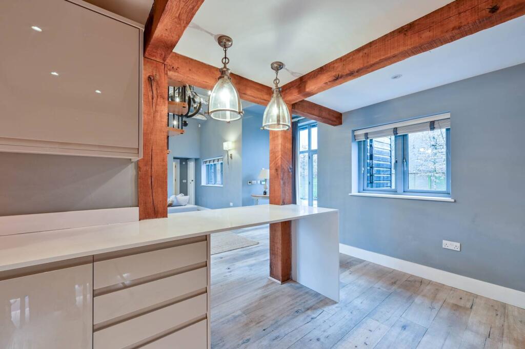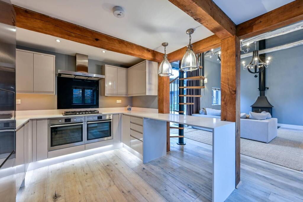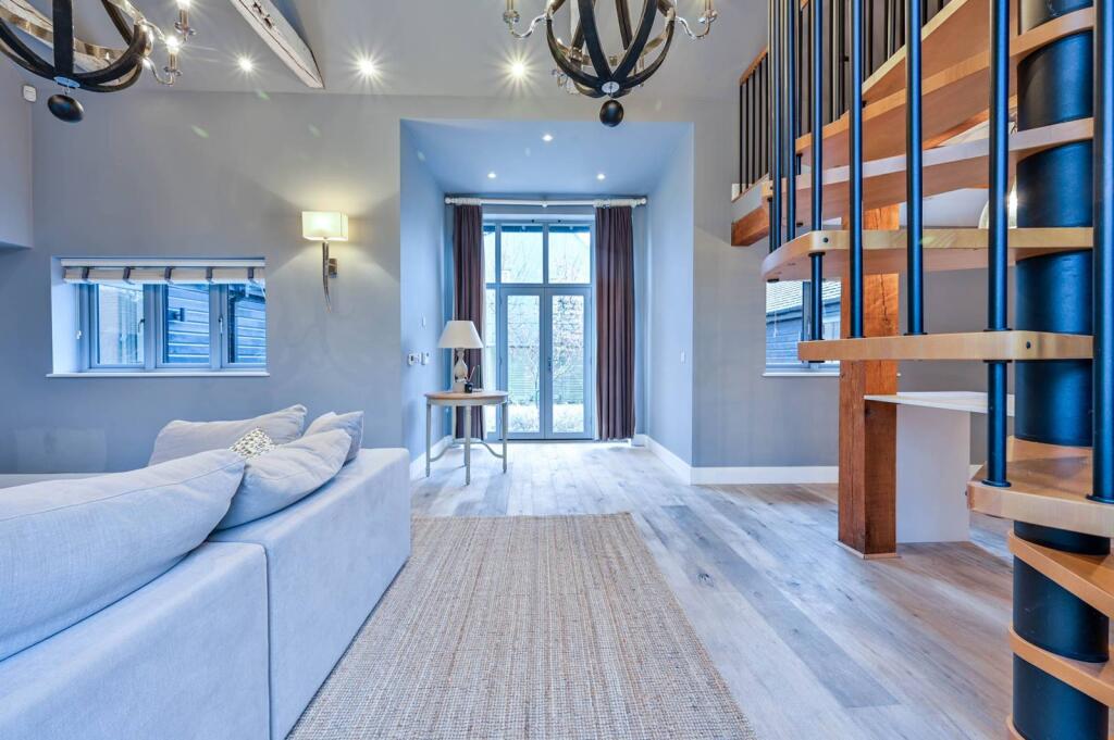 A truly stunning 3 bedroom barn style house, boasting an amazing reception room with vaulted ceiling and mezzanine-level, private garden with countryside views, carport and a stylish finish throughout.