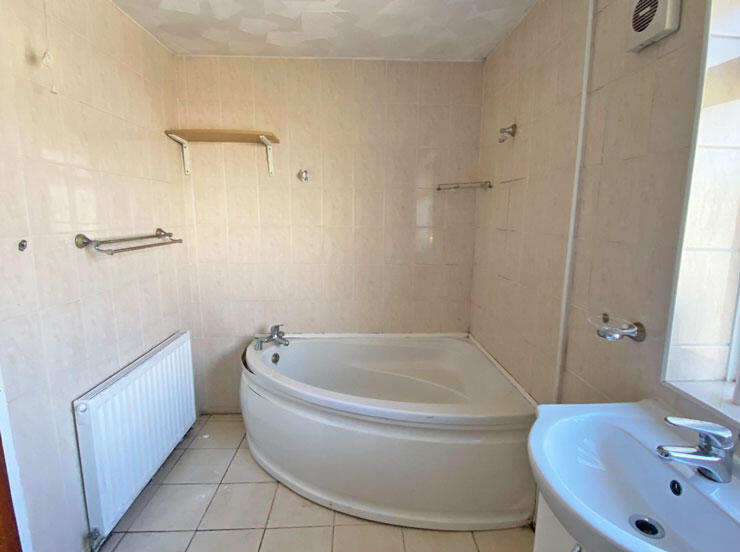 The property appears to be a two-story house with a garden, though the provided images suggest the garden requires some maintenance. The interior photos reveal a kitchen and bathrooms that could benefit from modernisation. The living areas seem spacious, but the overall condition suggests the property could require some investment to bring it up to a higher standard. The lack of precise plot size information limits a full evaluation of the land’s value.