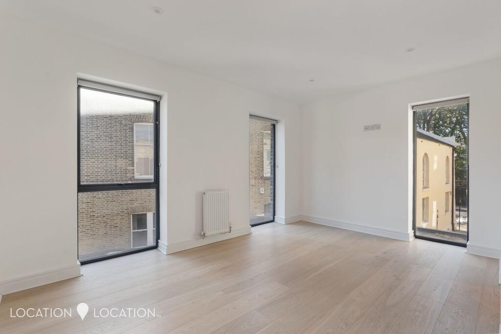 Set within a characterful former bank on Newington Green, this sleek first-floor apartment offers over 800 sq. ft. of contemporary living space. With its impressive high ceilings and abundant natural light, the two-bedroom, two-bathroom home makes an ideal first step onto the property ladder.