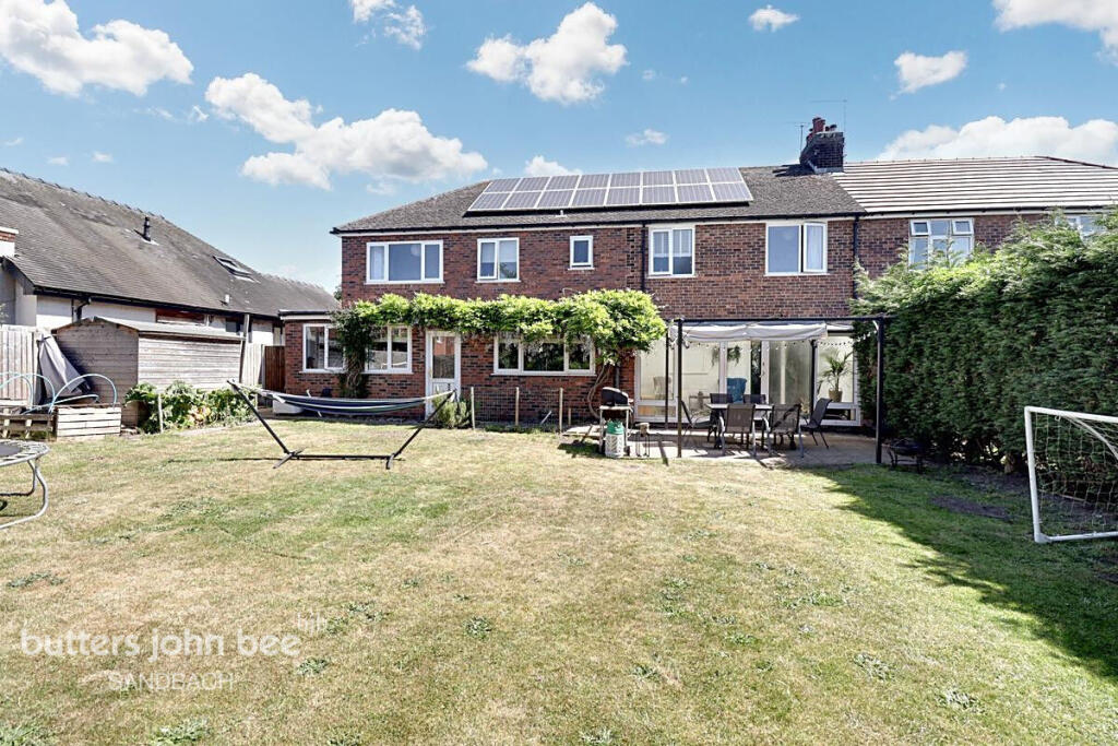 CHAIN FREE! This spacious six bedroom semi-detached home, located in the highly sought after area of Sandbach Heath, offers an ideal family living space with a perfect blend of modern comfort and charm. Sitting on a generous plot with south facing garden!
