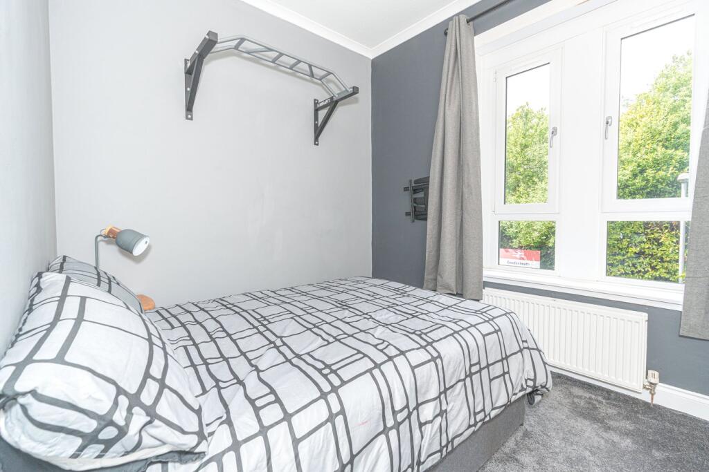 This is a one-bedroom flat on Station Road in Cowdenbeath. The flat is in a mixed commercial and residential area, with close proximity to the train station. The interior is functional but dated, and the exterior shows signs of wear. The property does not have a garden. The price is significantly below the average for the area, which may reflect the condition of the property. However, this could represent a good investment opportunity.