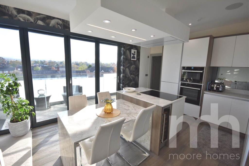 UNIQUE for POYNTON, a simply STUNNING 3rd floor PENTHOUSE APARTMENT set in a FANTASTIC DEVELOPMENT with far reaching views - LIFT ACCESS & LUXURIOUS SPECIFICATION THROUGHOUT - 24` OPEN PLAN LIVING DINING KITCHEN with bi-folds to 23` COVERED BALCONY - 2 EN SUITE LUXURY BEDROOMS - 3 BATHS - plus STUDY