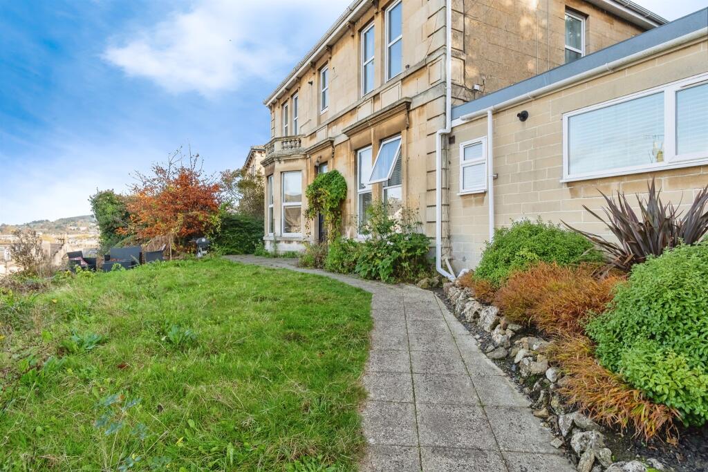 Sat in an elevated position looking over to the North of Bath, this ground floor two bedroom garden apartment offers great potential for any prospective buyer.